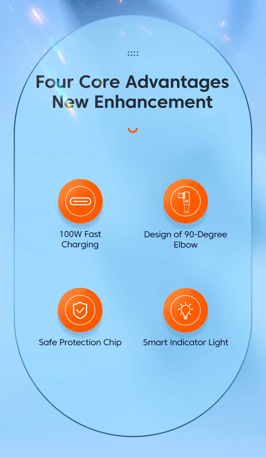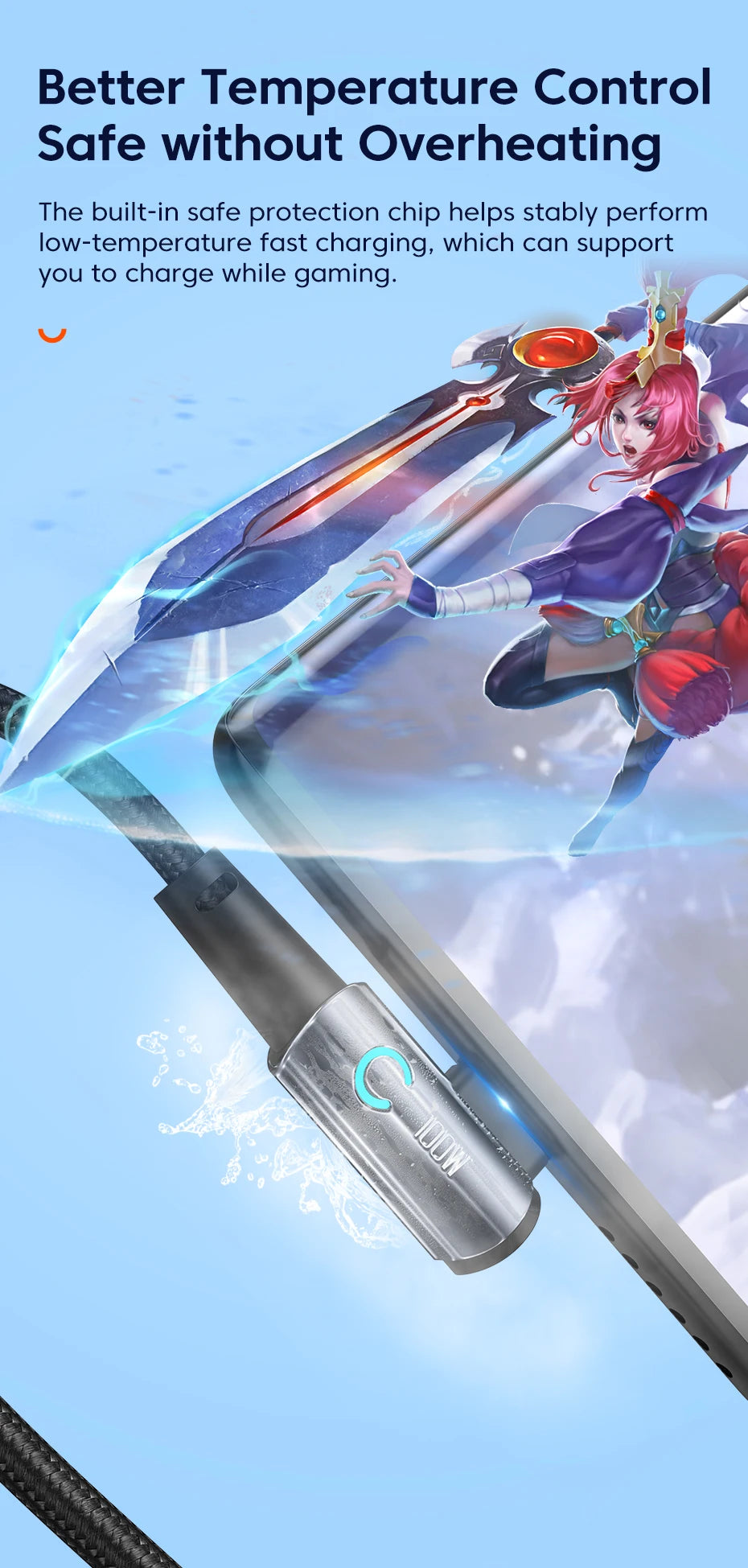 [Good Partner for Game]6A Elbow Fast Charging Cable 66W Super Fast Charge, Design of 90-Degree Elbow, Safe Protection Chip, Smart Indicator Light