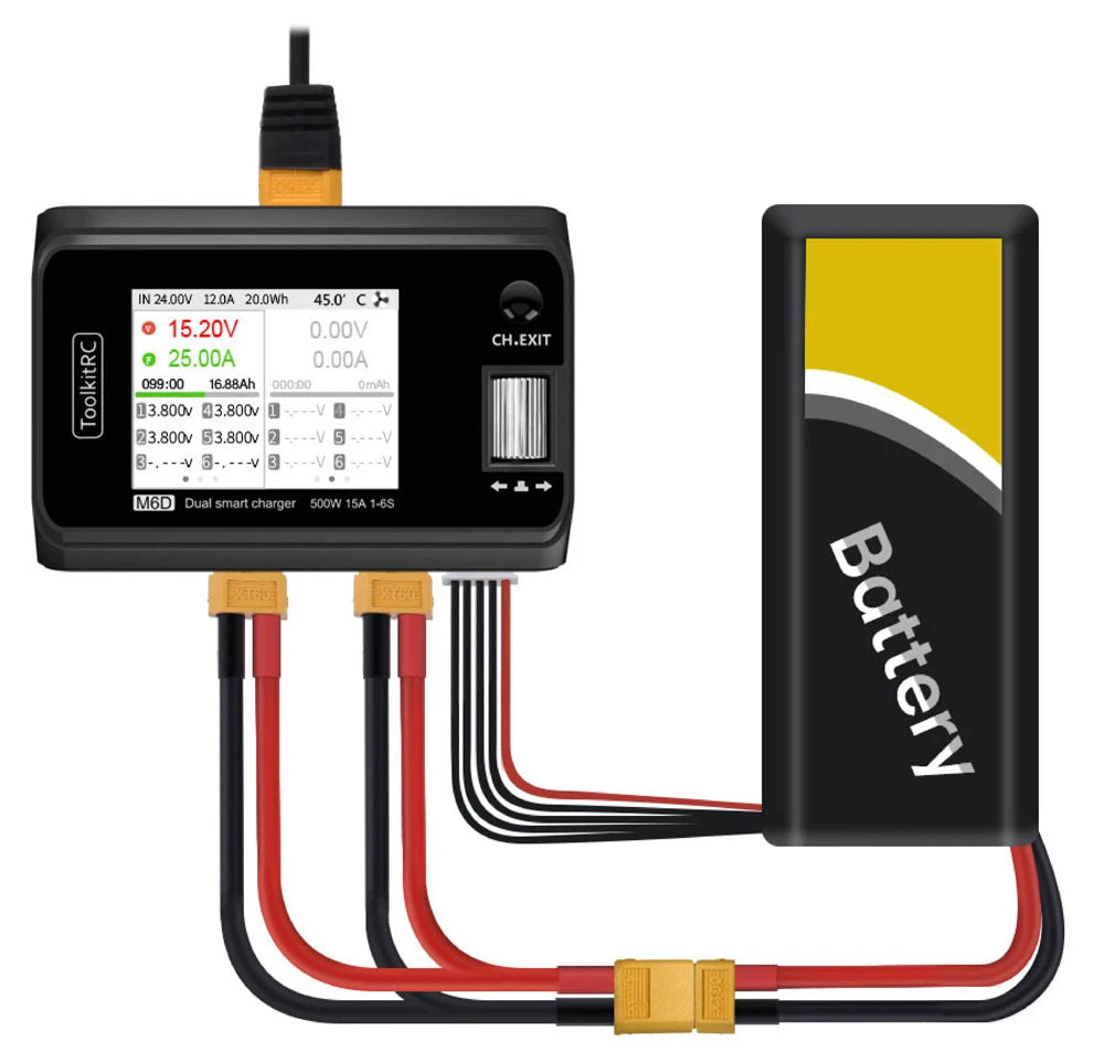 ToolkitRC M6D V3 500W 15A DC Dual Channel MINI Smart Charger Discharger For 1-6S Lipo Battery FPV Model Spare Part Replace