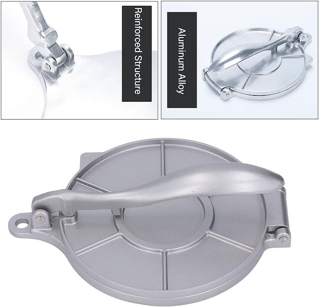 - Tortilla Press: Designed to have 6.5 inches diameter, the roti press can quick shape the dough into the ideal size for cooking.