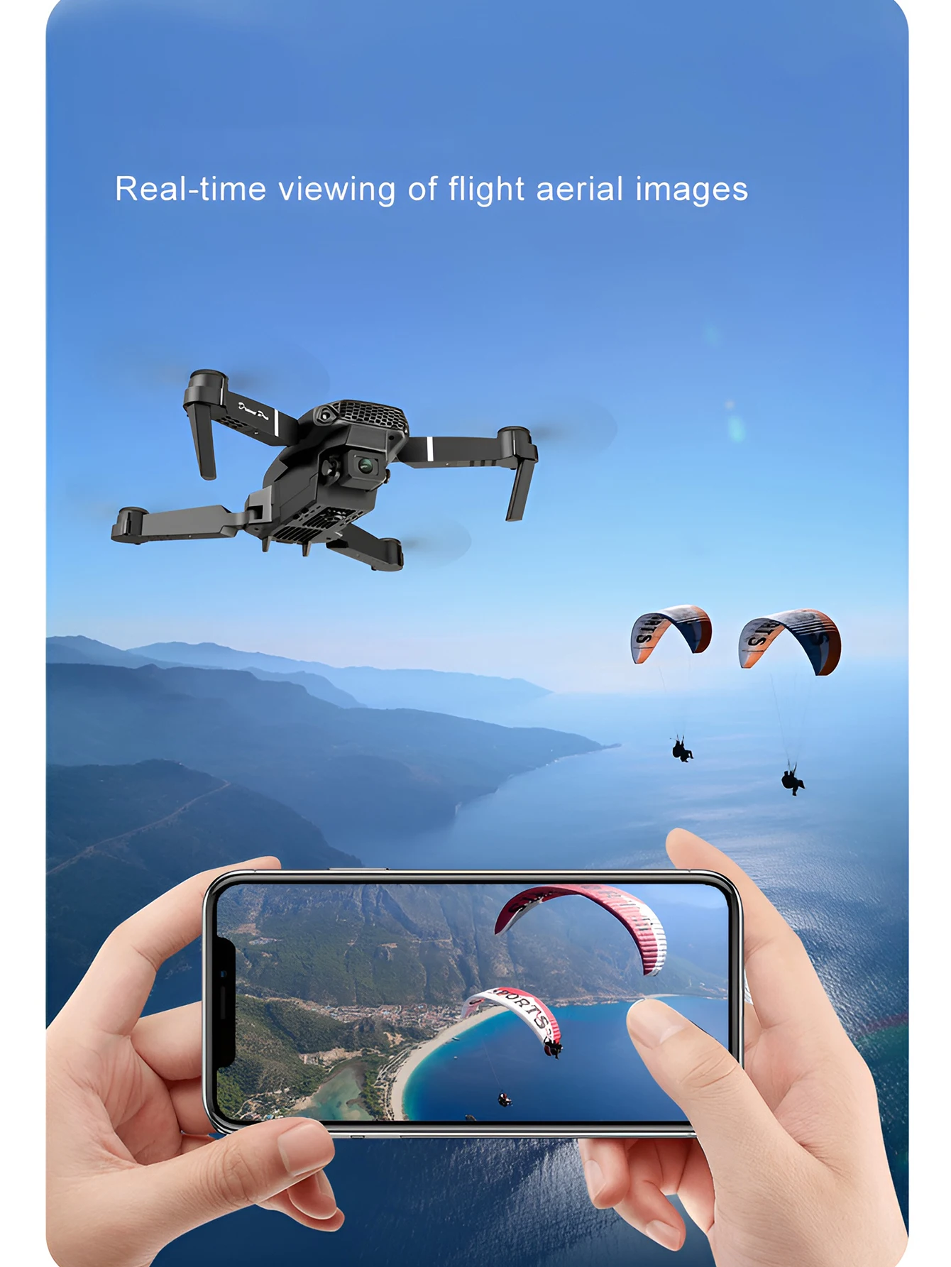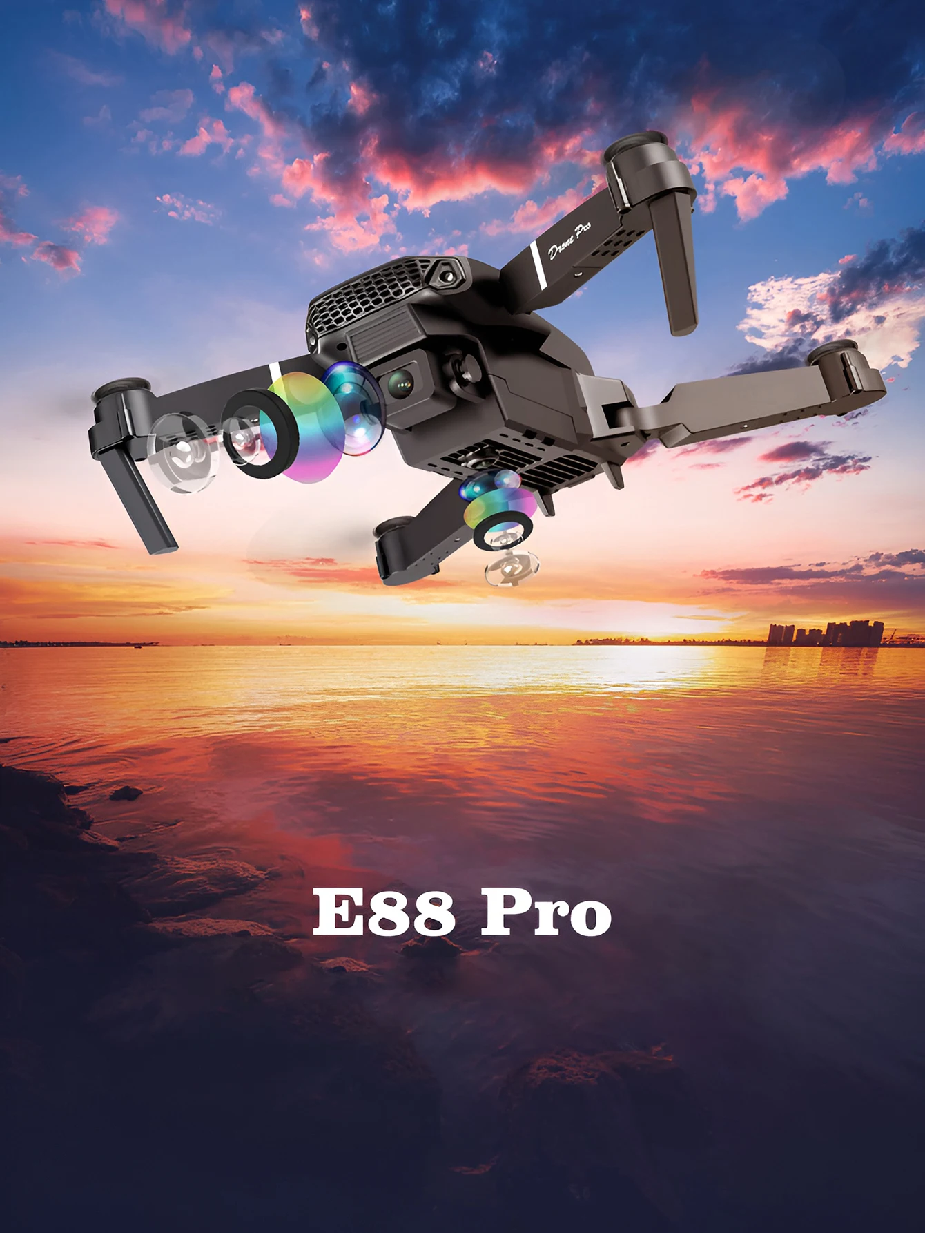Toy drone E88 remote control small aircraft dual camera HD quadcopter can be connected to mobile APP foldable bag