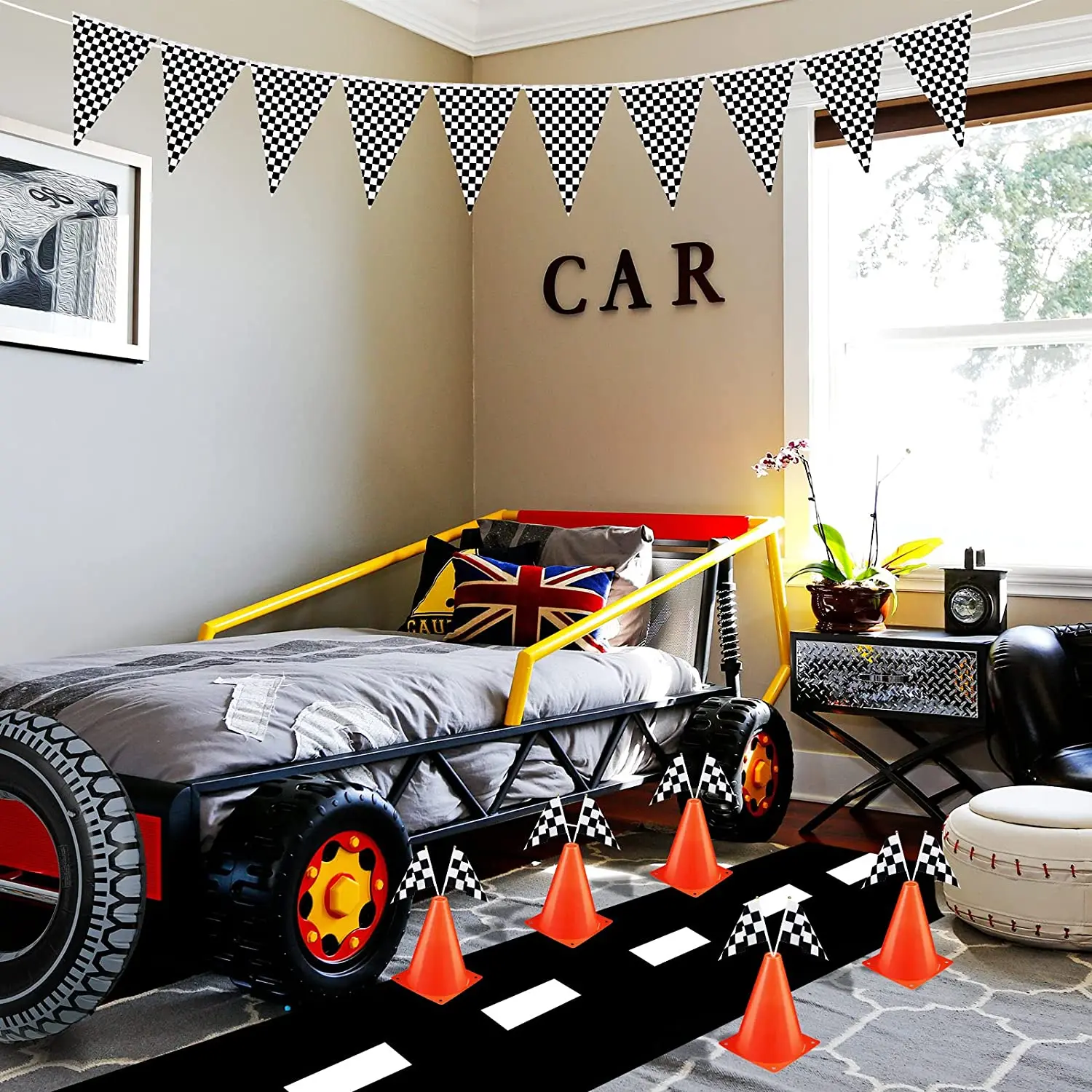 Traffic Cones and Racing Checkered Flags Black White Flags Kids Racing Theme Decorations for Race Car Birthday Party Supplies