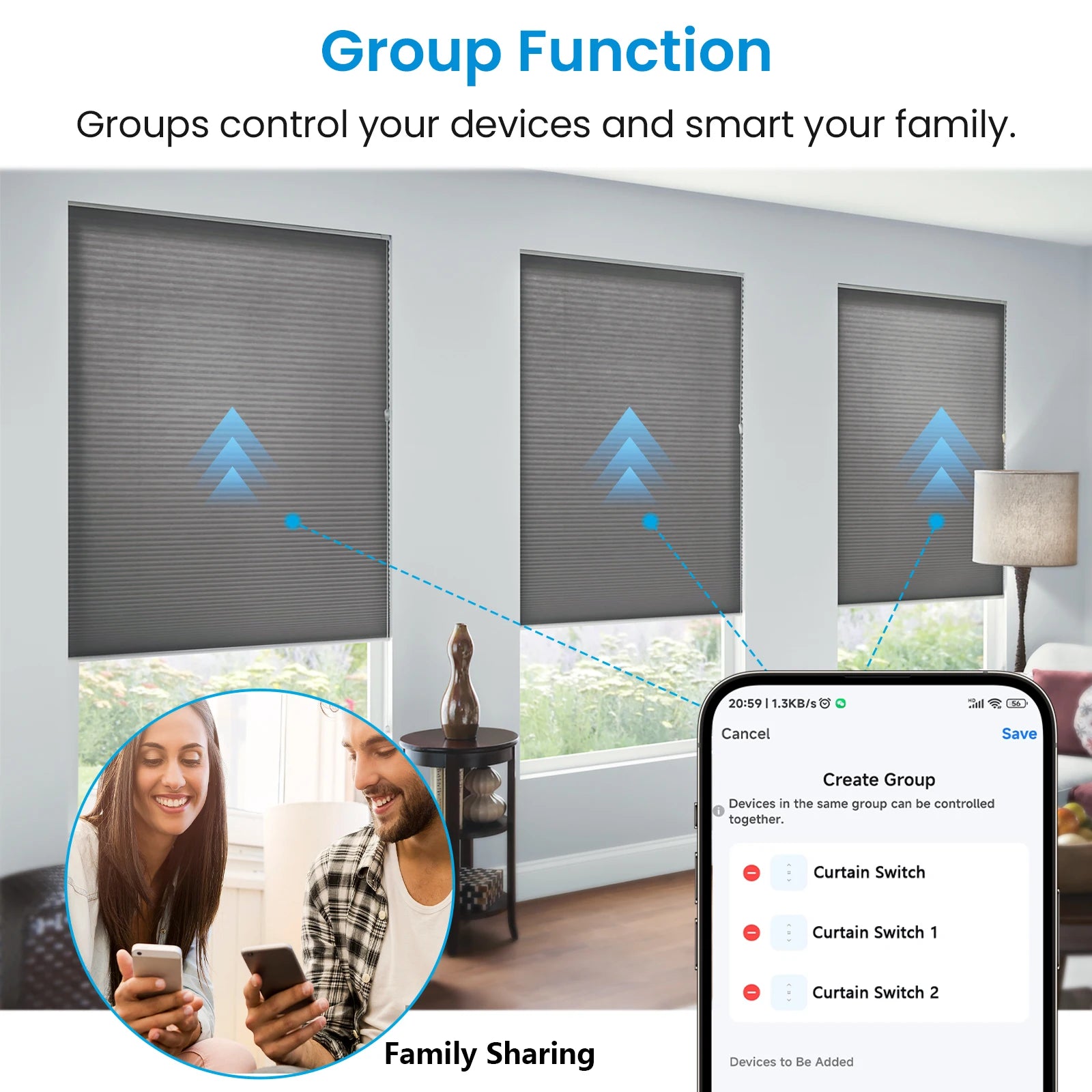The RF curtain remote can just work with the roller shutter switch in this listing, because the curtain switch in this listing is RF + WiFi version. Please don’t buy the curtain switches in other listing even they are cheaper, they are not compatible.