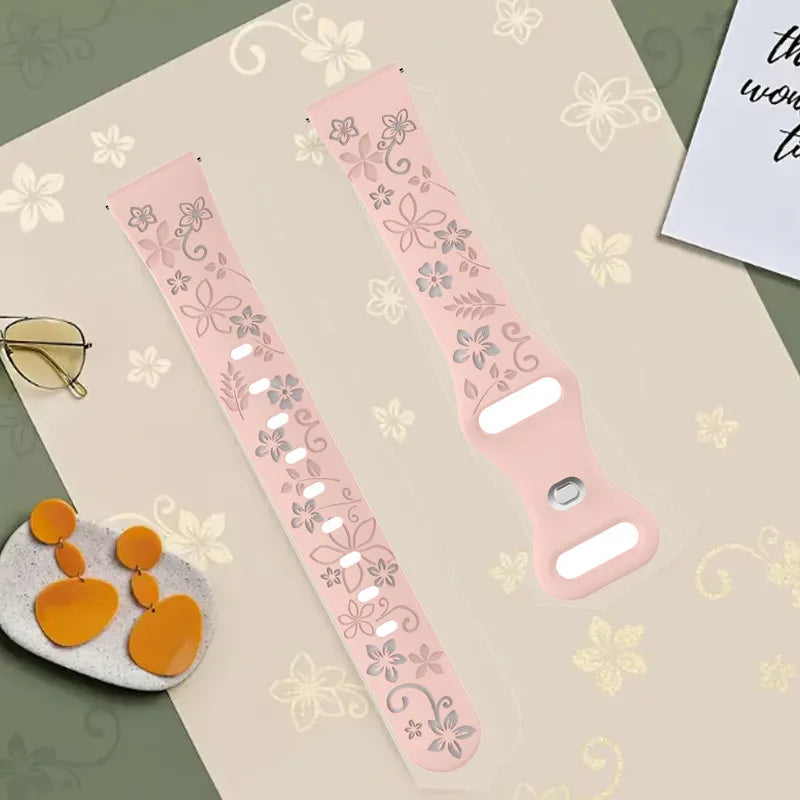 Two-color Flower Design Floral Engraved Silicone Strap 18/20/22mm, For Amazfit GTR, Huawei,Garmin Samsung Galaxy Watch 7 6 5 4