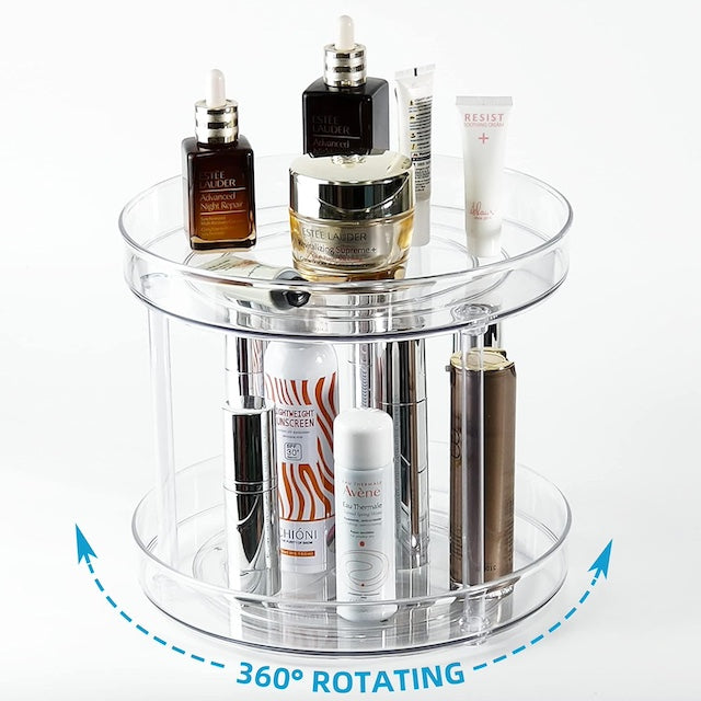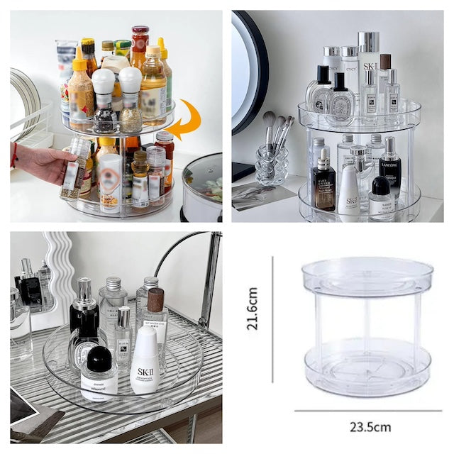 - Multi-Purpose: Use this multipurpose turntable as your spice rack, seasoning organizer, cosmetics organizer, perfume tray, stationery holder, toys display shelf, cabinet rack for kitchen or living room, even vanity jewelry jewel holder bathroom organizer, maximizing vertical space and keep desktop neat and tidy