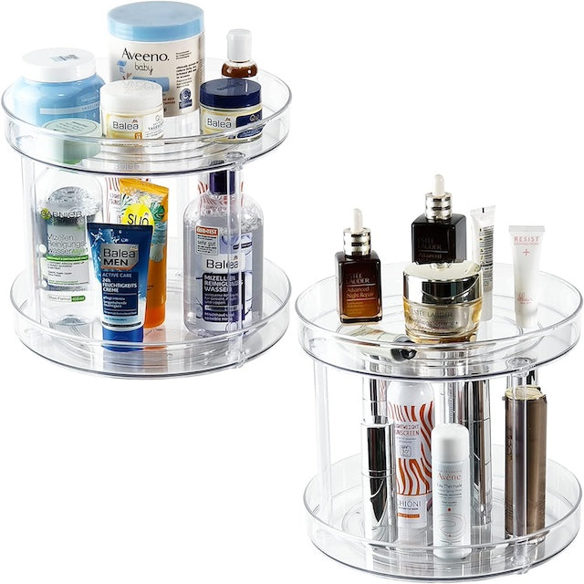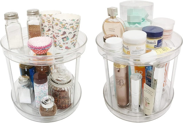 Two-Tier 360 Rotation Cabinet Turntable Organizer, One-Tier Spice Rack Cabinet Organizer, Clear Spinning Jewelry Organizer