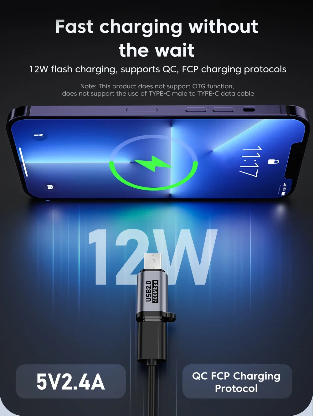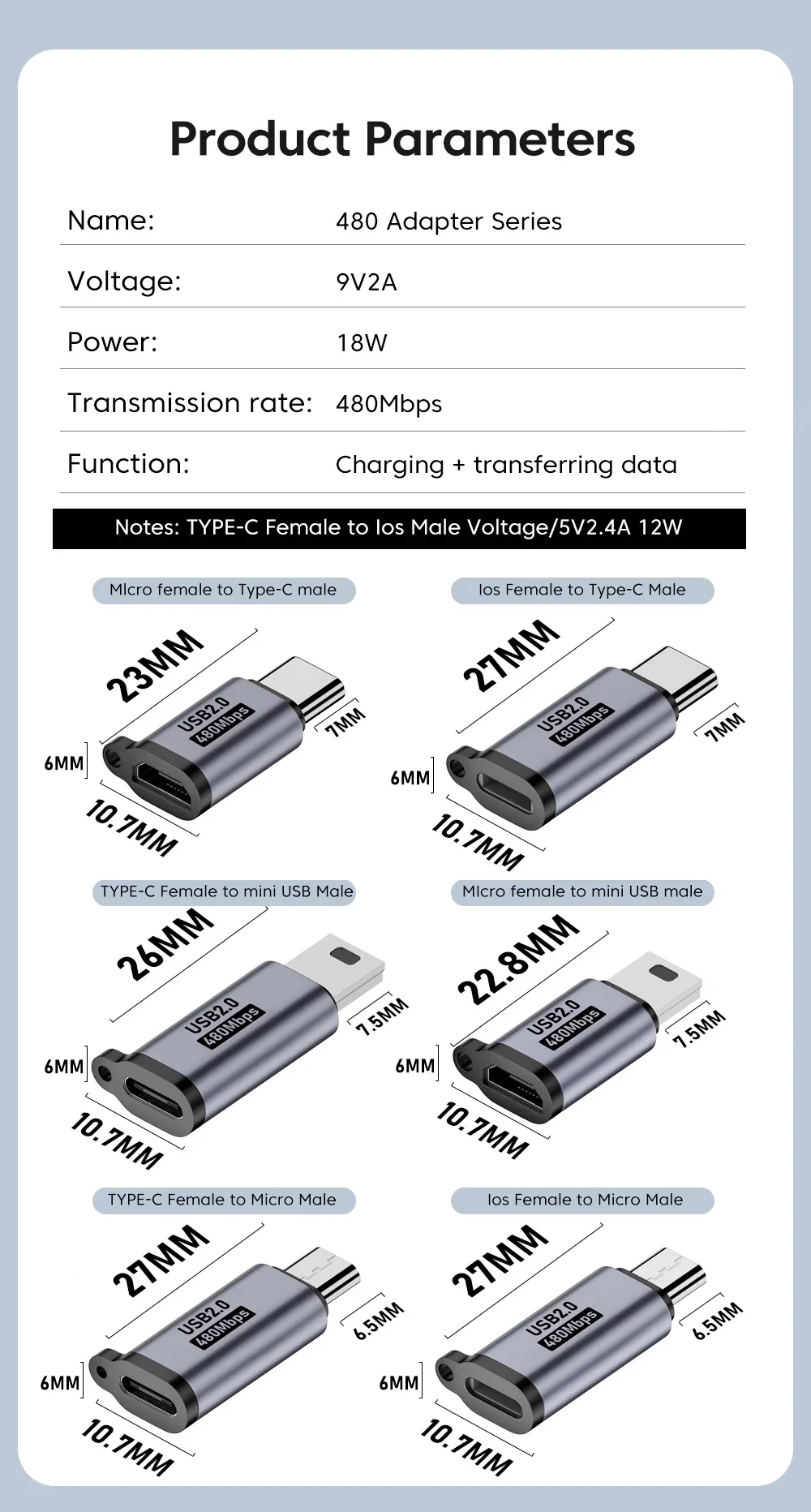 Note : Adapter can only support charging & data transfer function, not support otg function, not support earphones