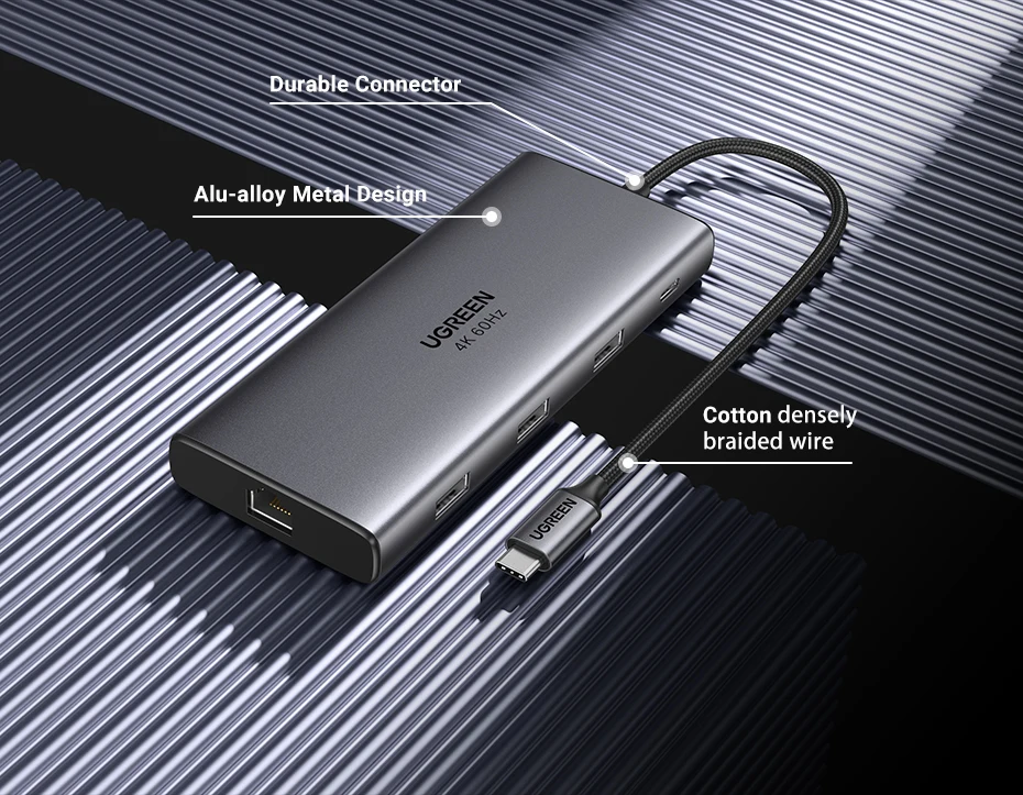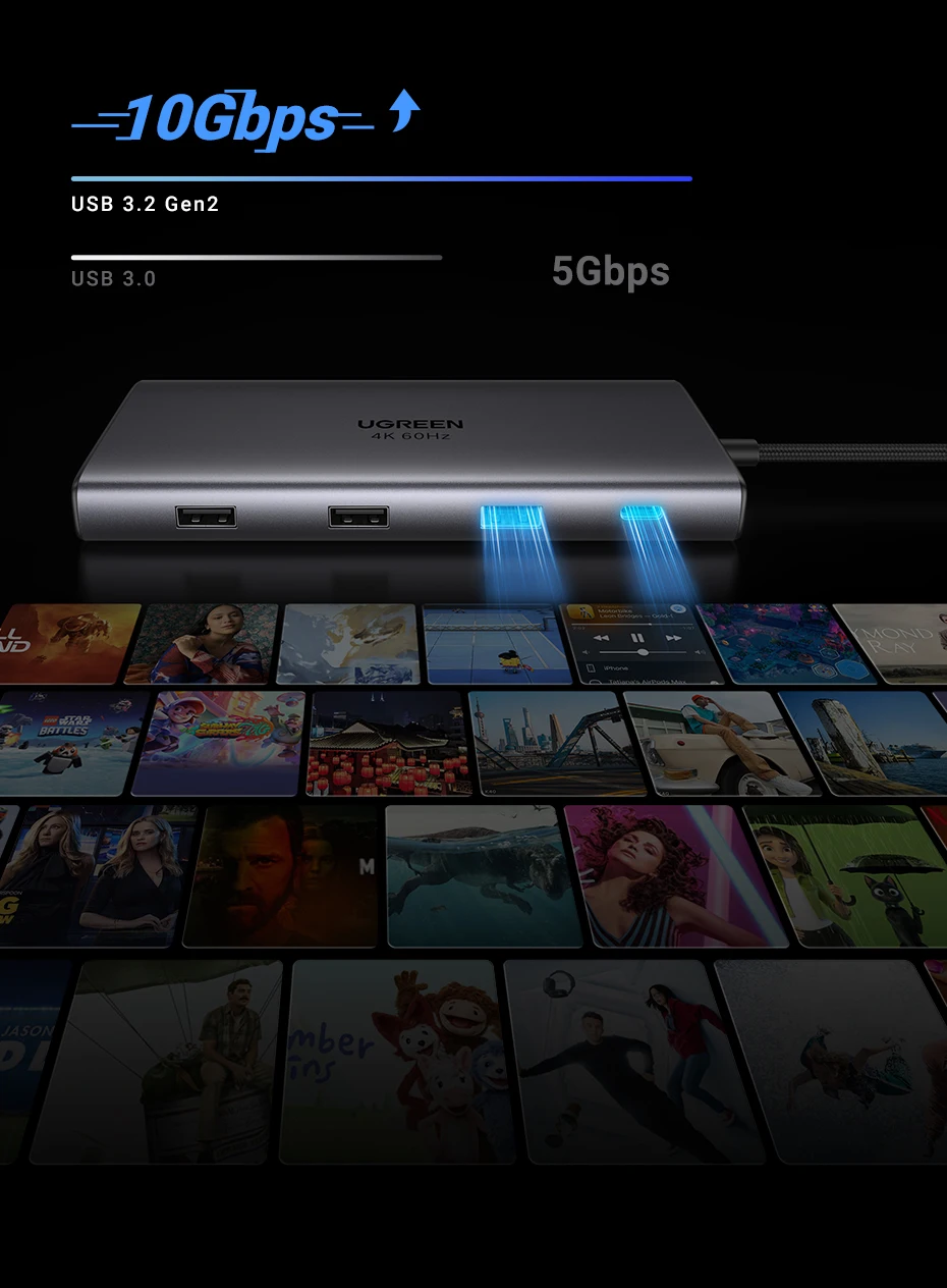 • High-Speed Connectivity :Experience seamless data transfer with UGREEN's USB C Hub, boasting a speed of 10Gbps and supporting HDMI-Compatible, Card Reader, and RJ45 interfaces.