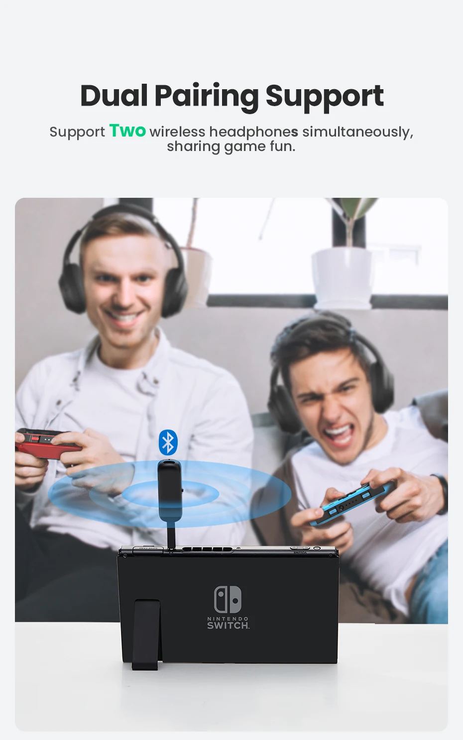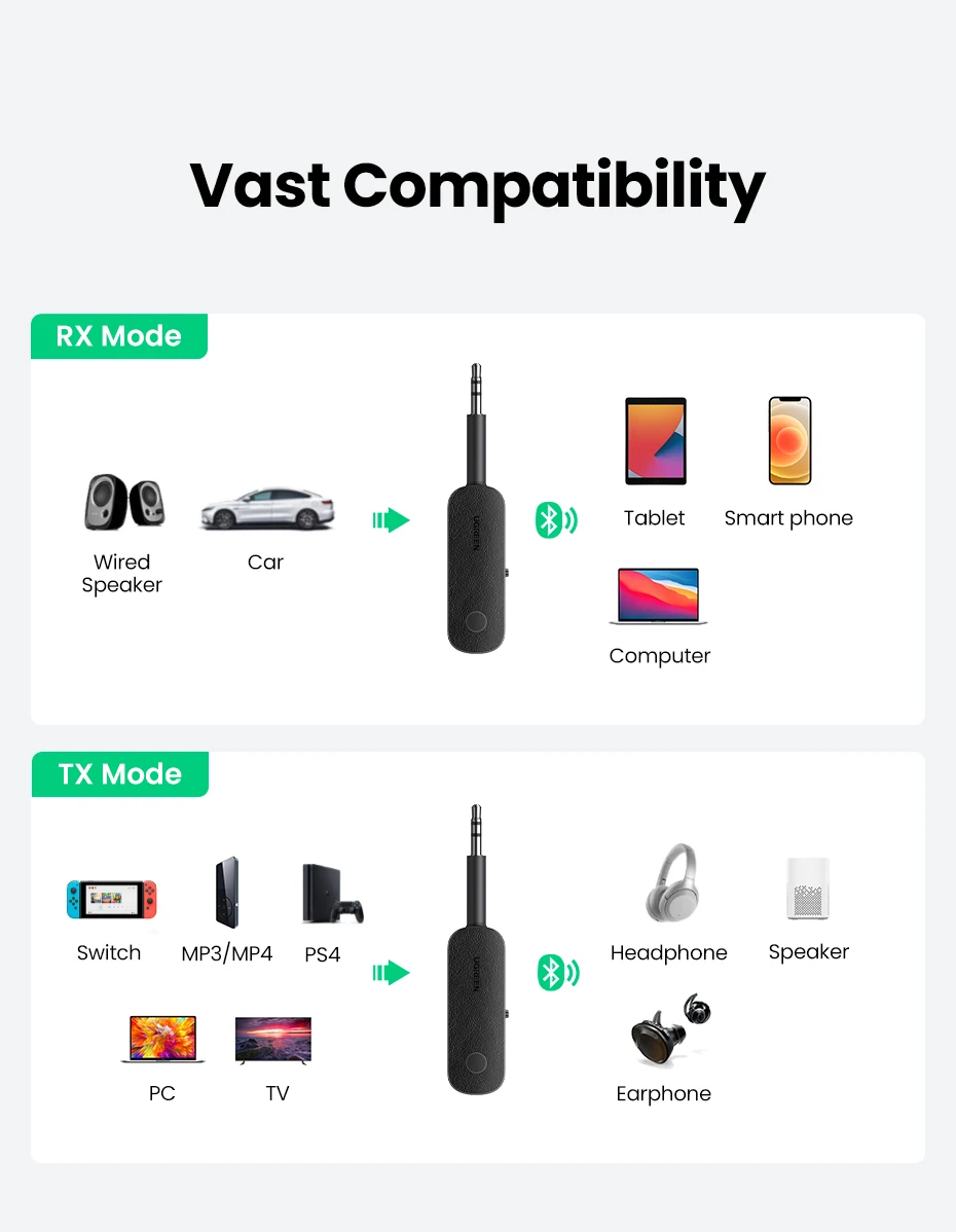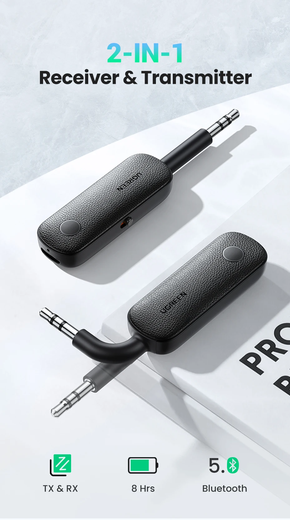 UGREEN 2-in-1 Bluetooth Adapter Transmitter Receiver Bluetooth AUX 5.0 Wireless 3.5mm Adapter Stereo for Earphones TV Car Audio