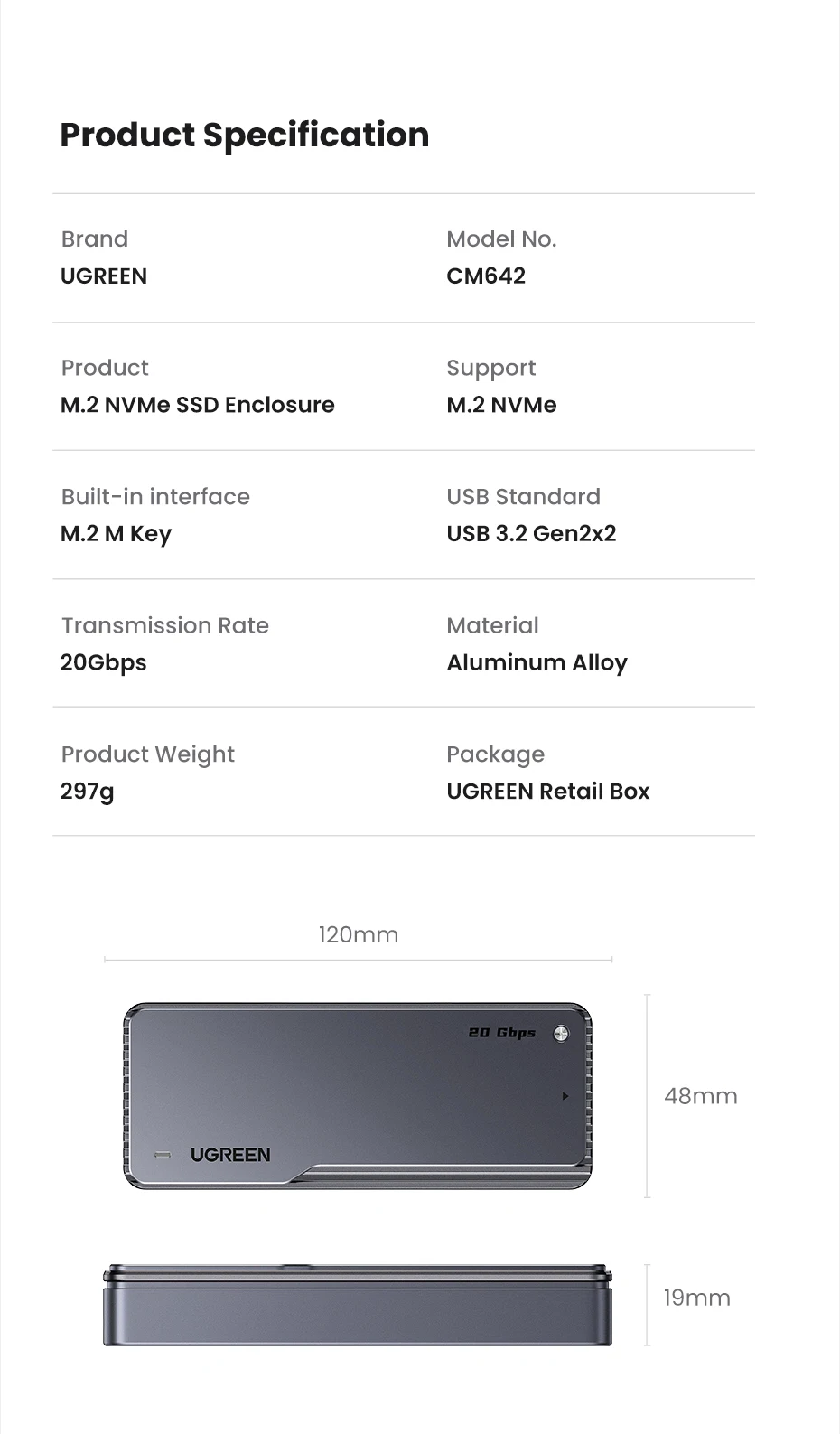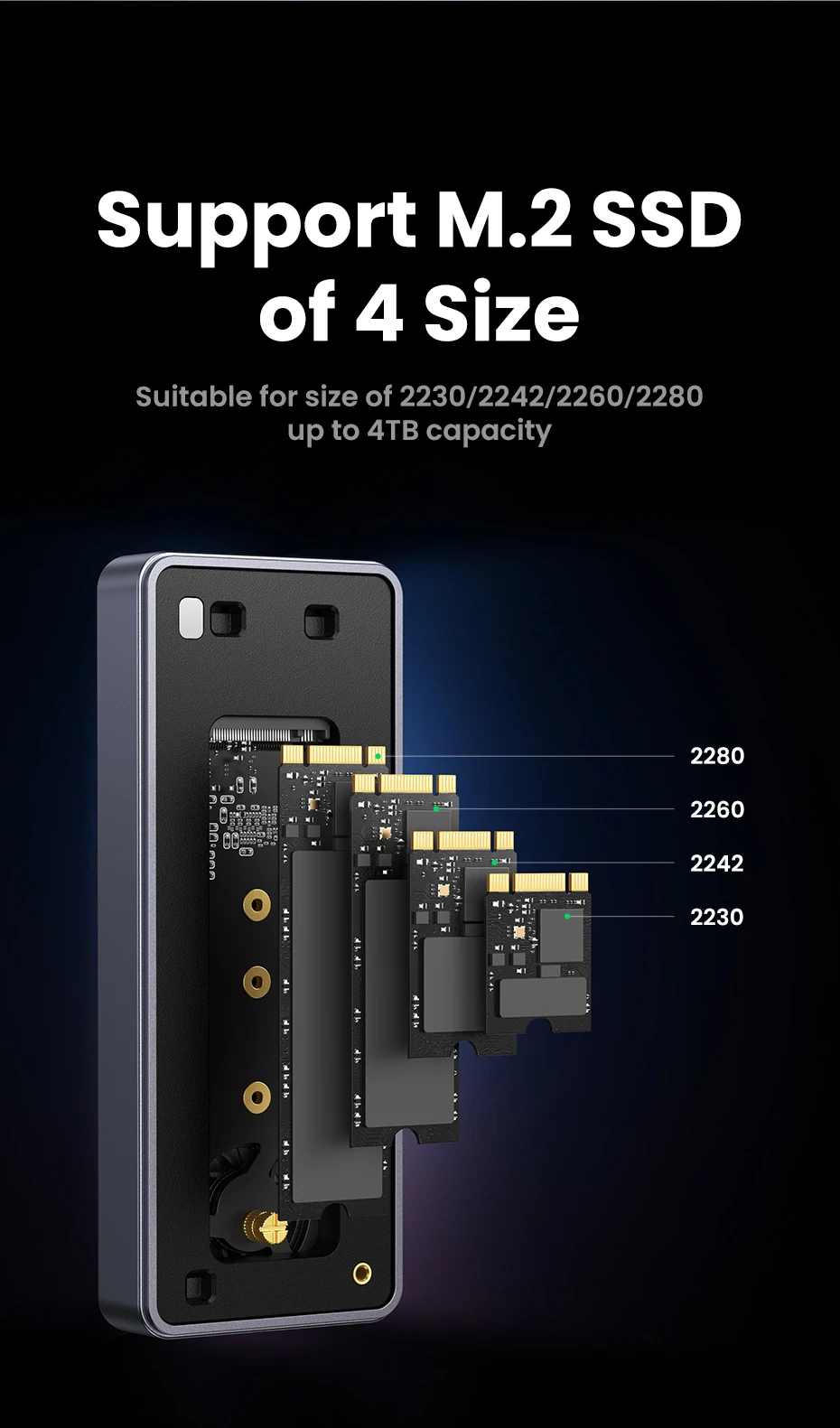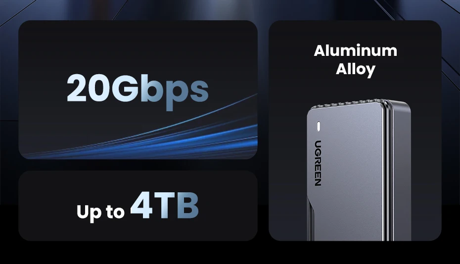 • High-Speed Storage :Experience rapid data transfer with UGREEN's 20Gbps NVMe SSD Case, ensuring efficient storage and retrieval of your files.
