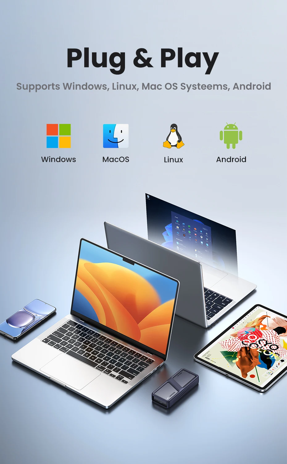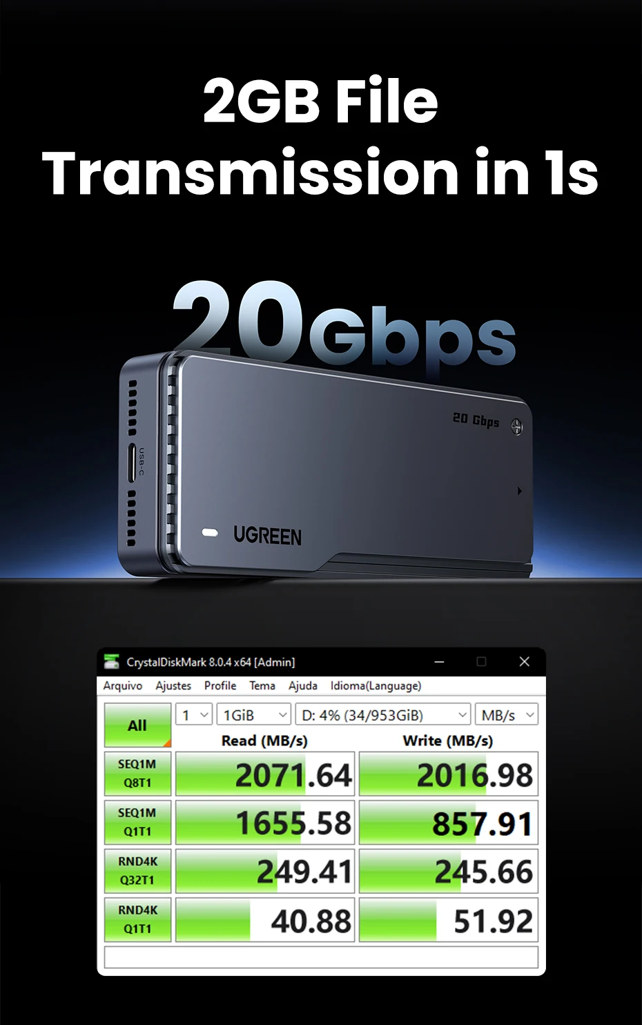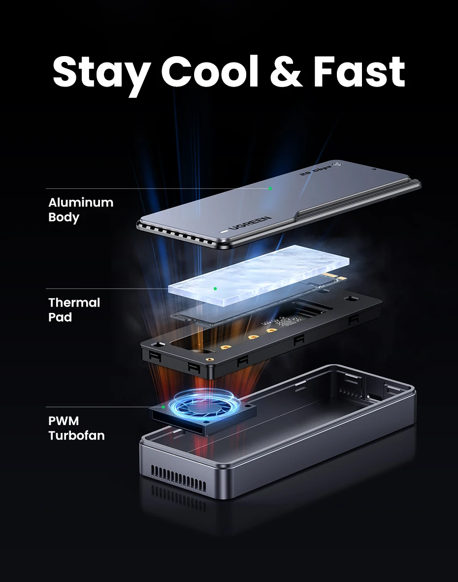 • High-Speed Storage :Experience rapid data transfer with UGREEN's 20Gbps NVMe SSD Case, ensuring efficient storage and retrieval of your files.
