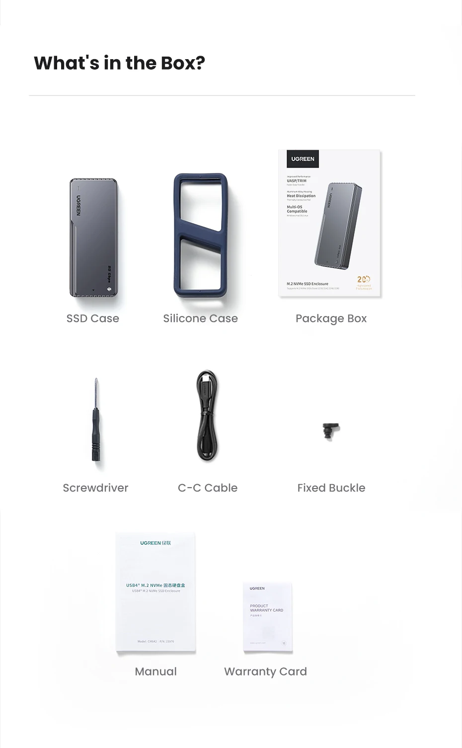 • Foreign Direct Sales :As a product of Mainland China, this UGREEN SSD Case benefits from foreign direct sales, ensuring you get the best value for your money.