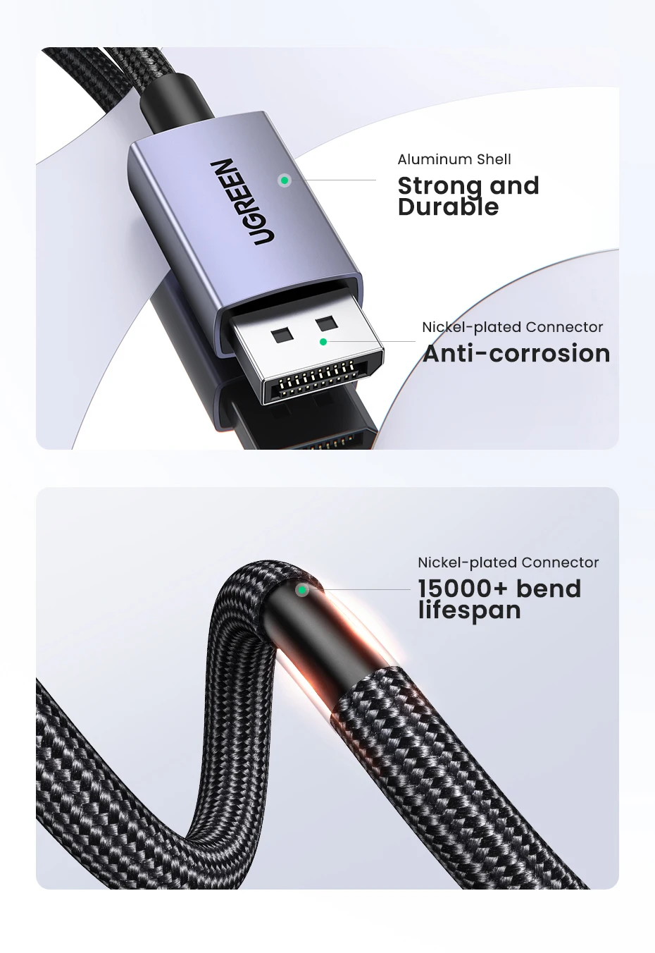 UGREEN Displayport Cable 16K 8K Video Audio Cable for Xiaomi TV Box PC Laptop Monitor Video Game DP Cable Display Port