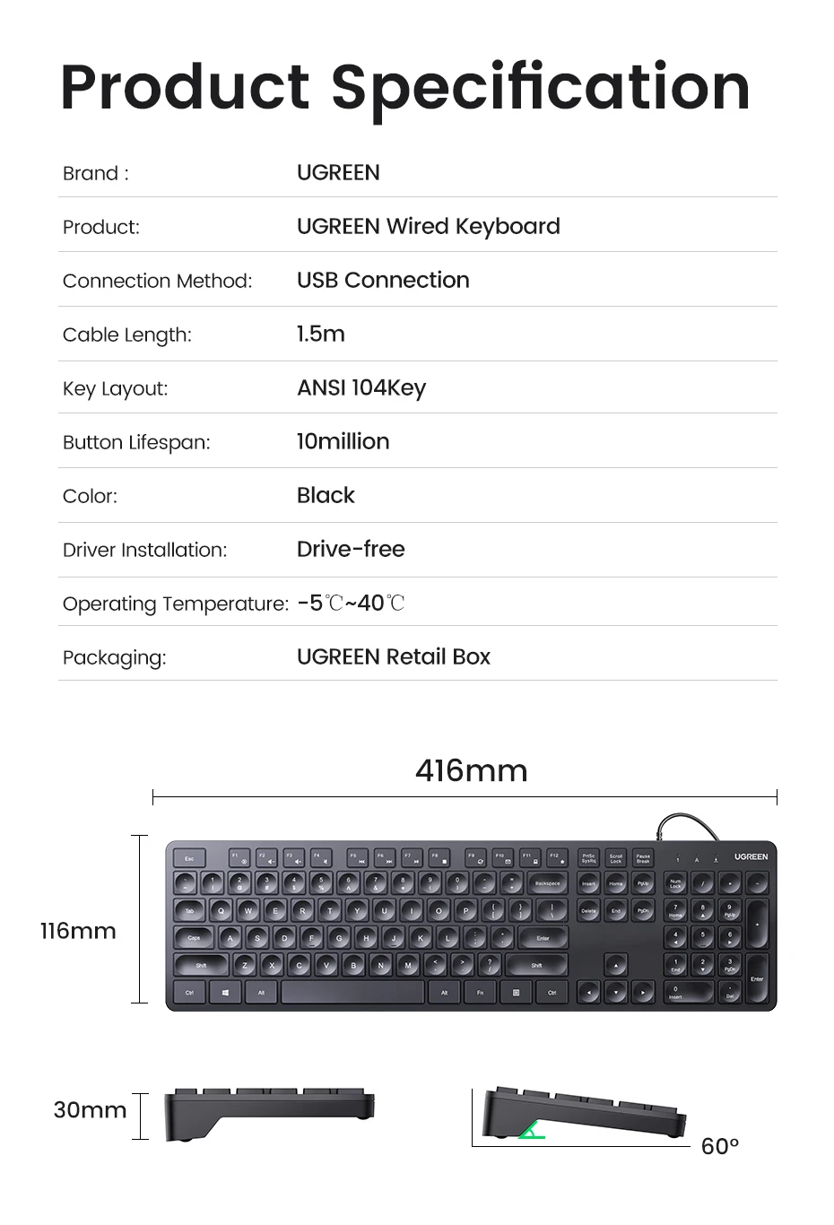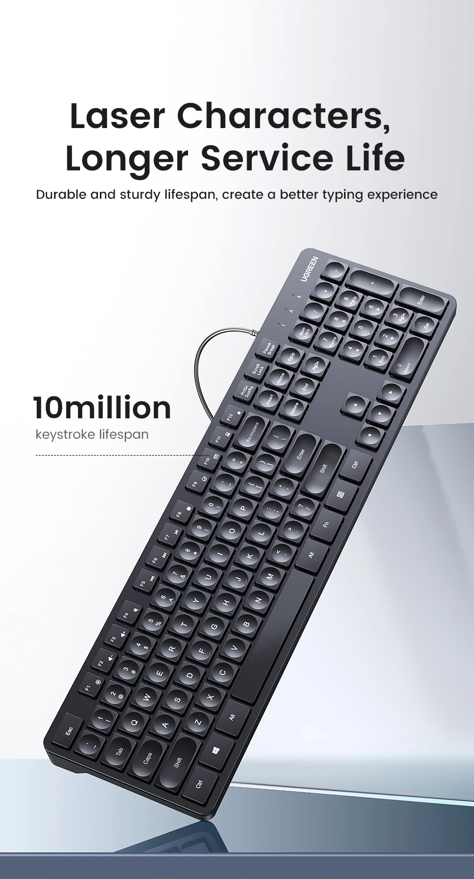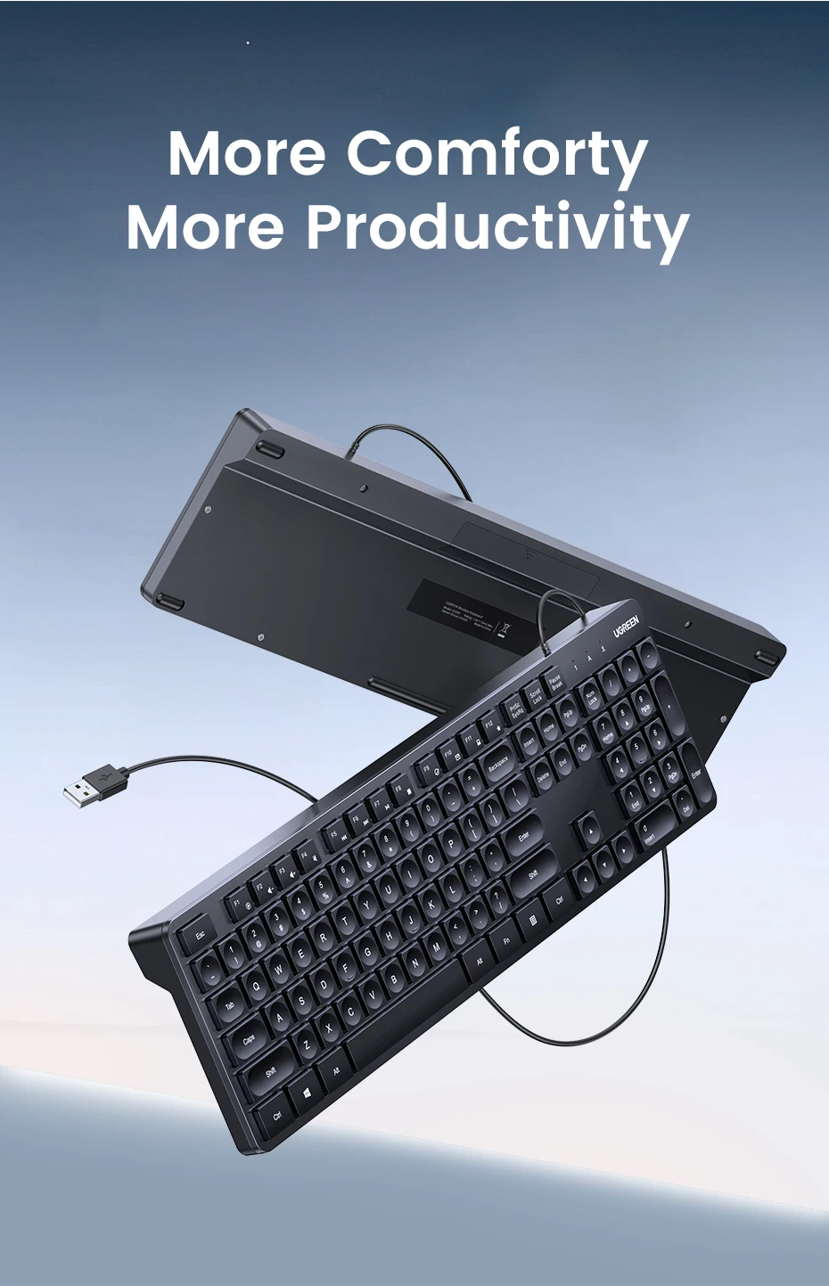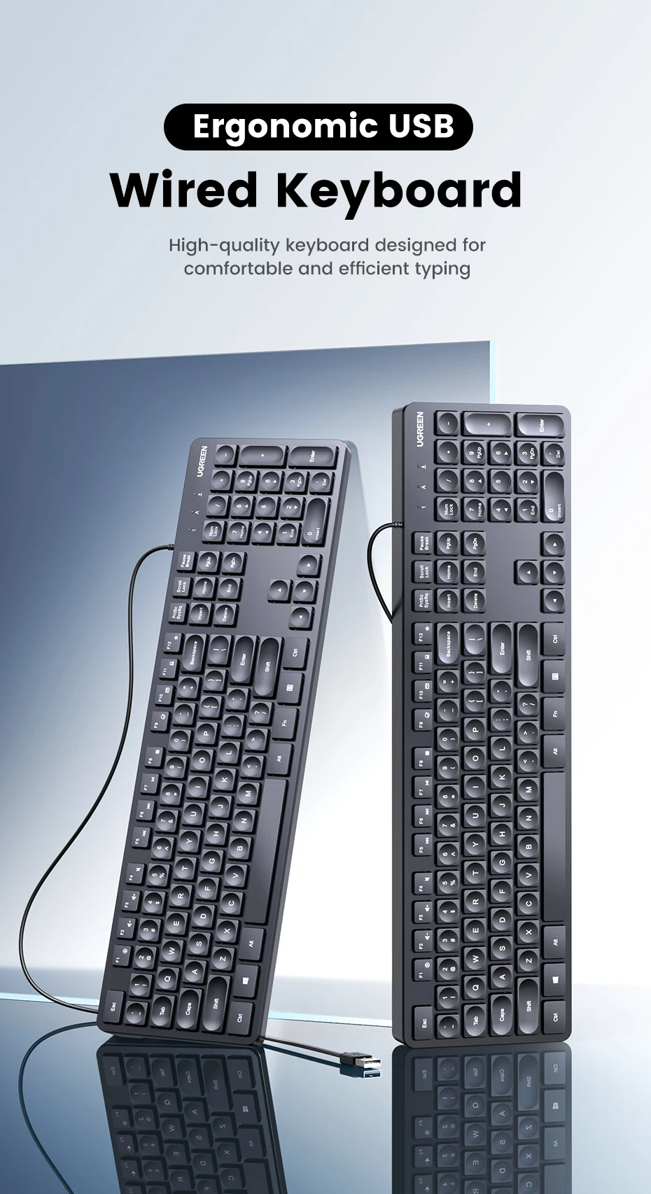 UGREEN Keyboard Wired US Layout English Keycaps 104 Keys Full Size for PC Laptop Ergonomic USB Keyboard 1.5M Cable Plug & Play