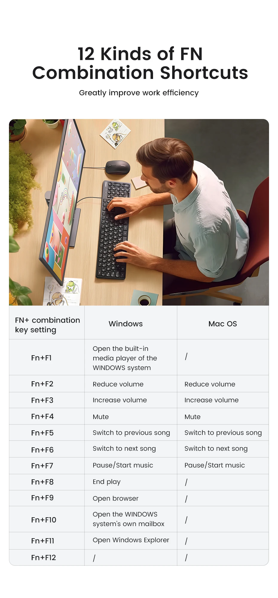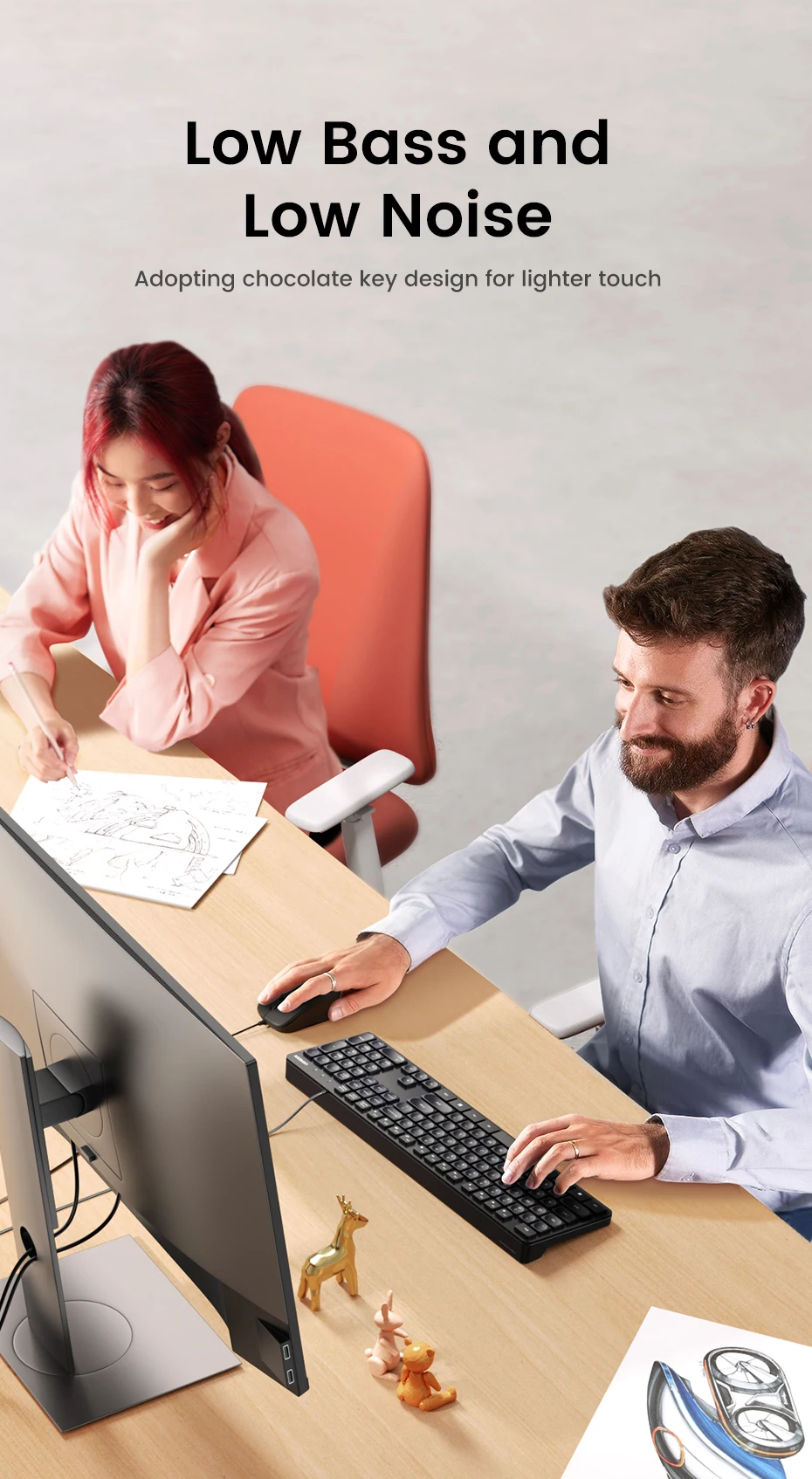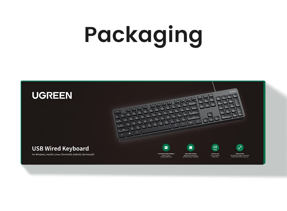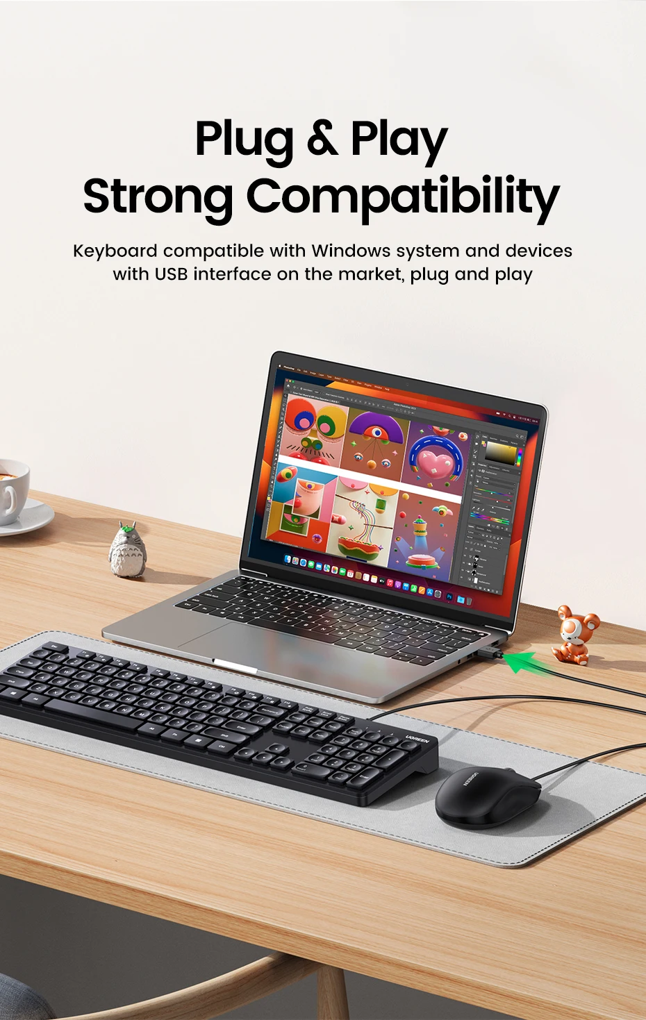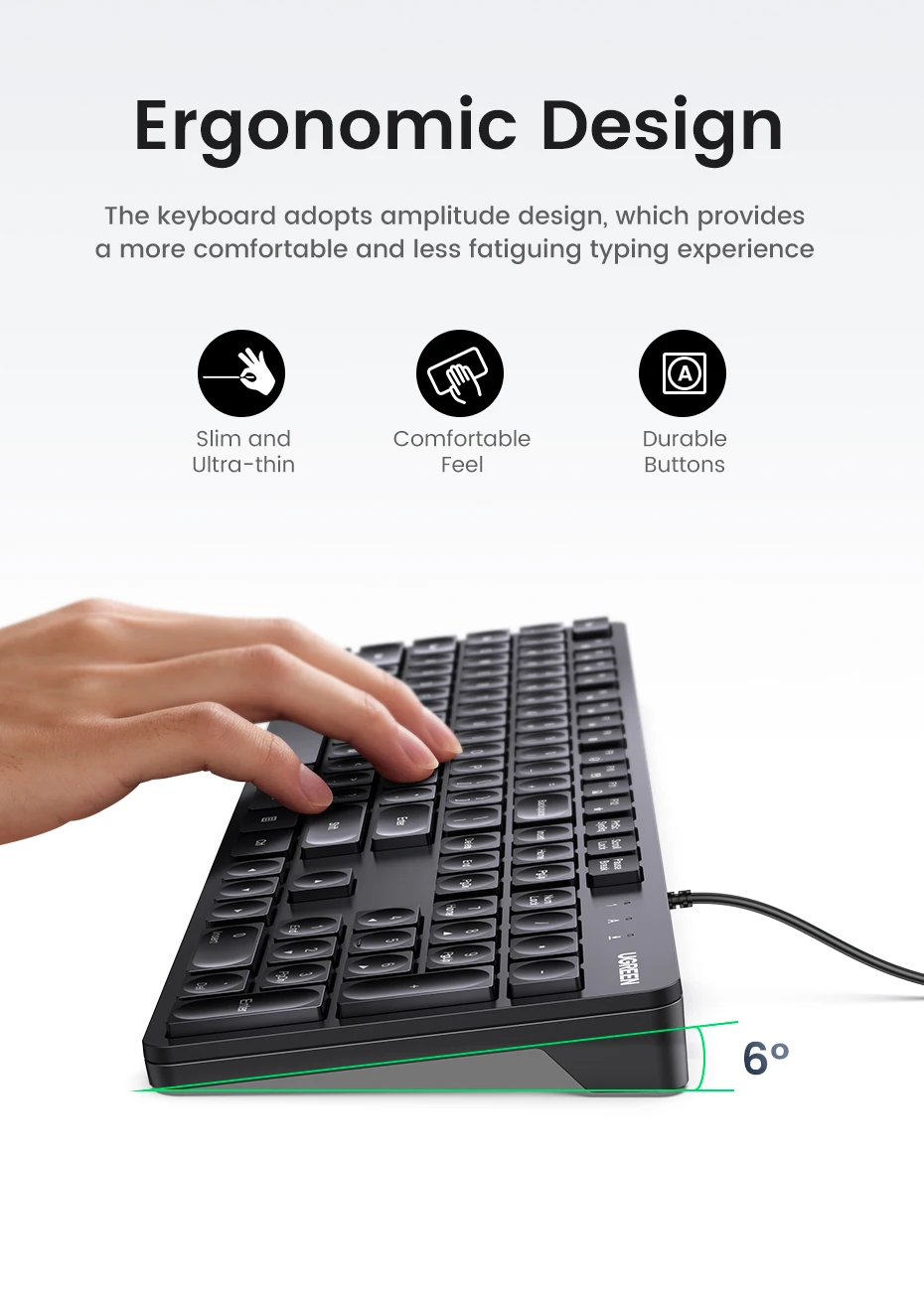 UGREEN Keyboard Wired US Layout English Keycaps 104 Keys Full Size for PC Laptop Ergonomic USB Keyboard 1.5M Cable Plug & Play