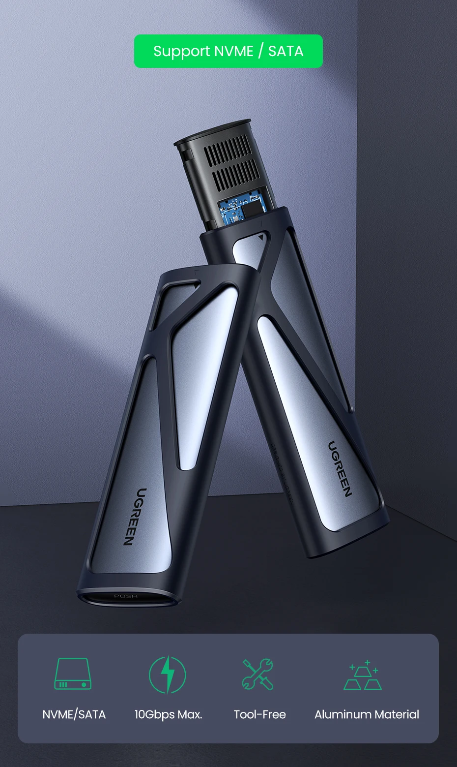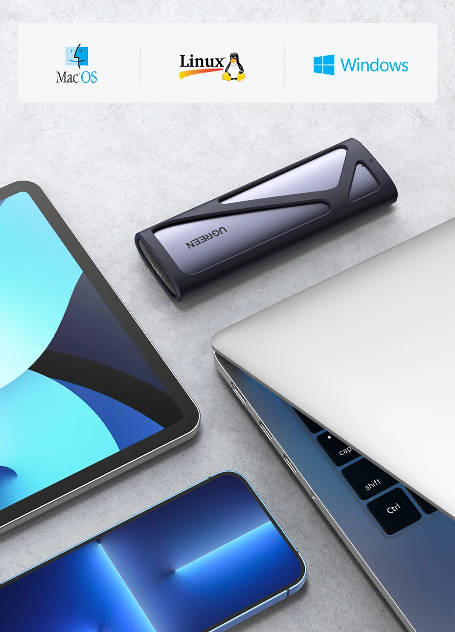 • Dual Protocol Support :The UGREEN M2 SSD Case supports both NVME and SATA protocols, offering versatile storage options for your device.