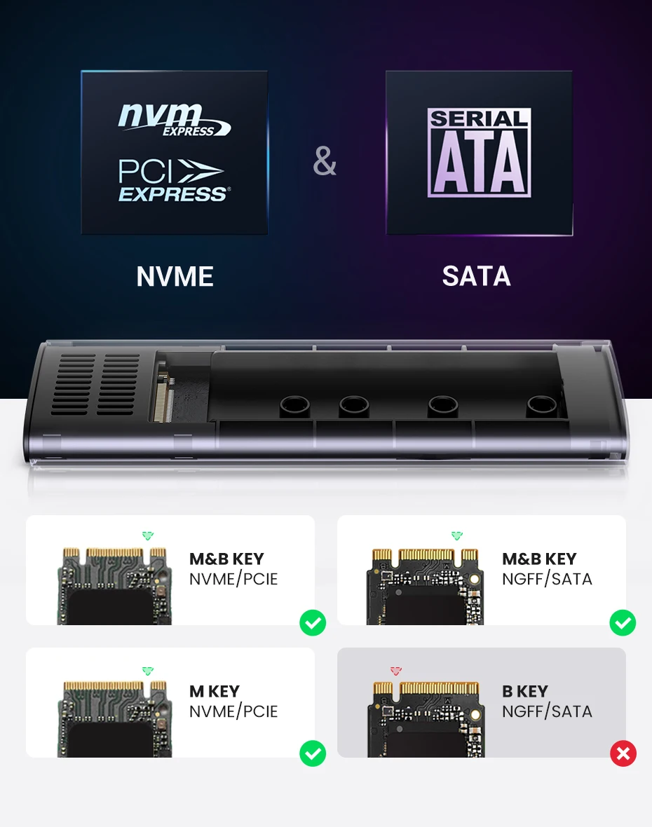 Compatible with M.2 M-Key(NVME) / M&B-Key(SATA) SSD