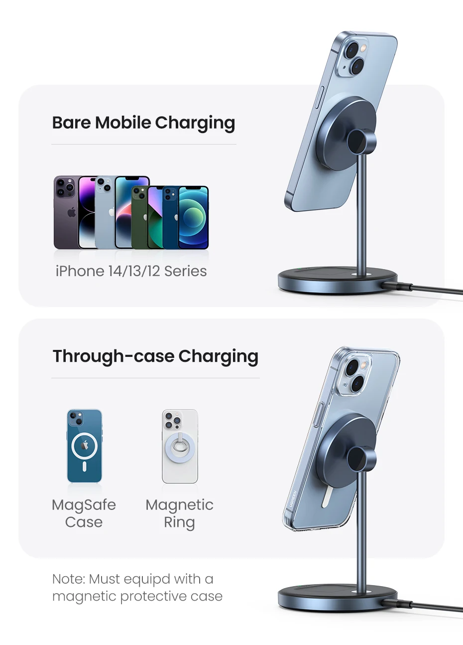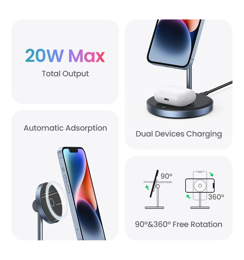 UGREEN Magnetic Wireless Charger Stand 20W Max 2-in-1 Charging Stand For iPhone 15 14 Pro Max/AirPods Fast Charger Qi 5/7.5/15W