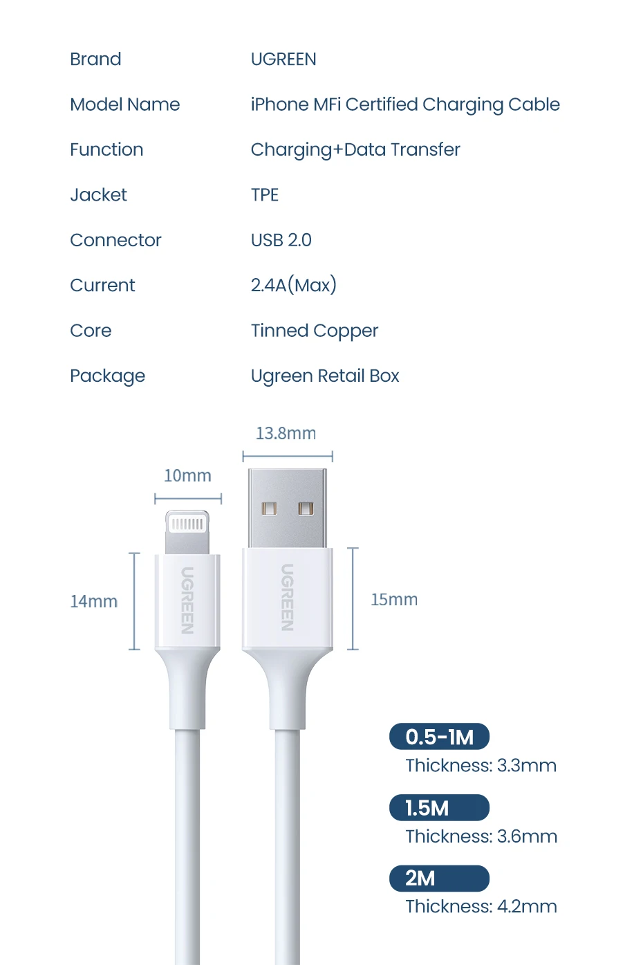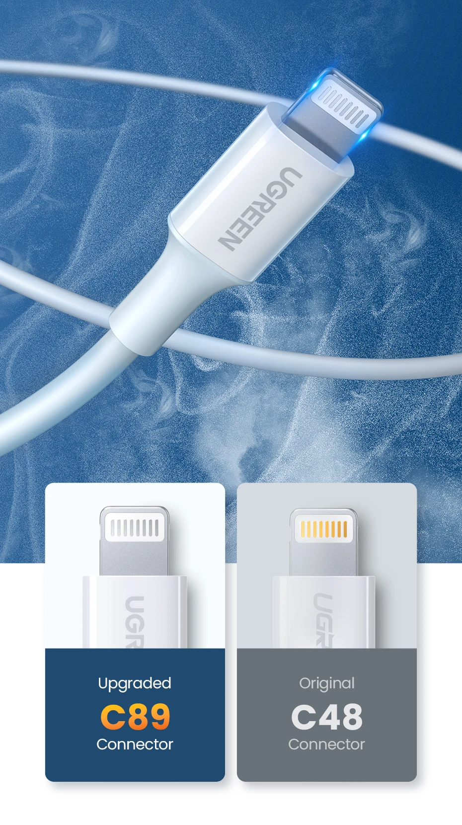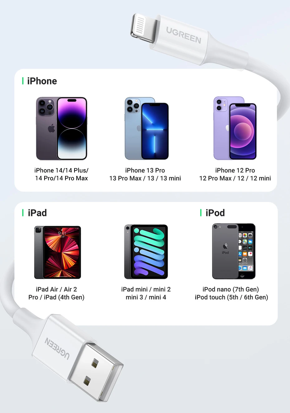 UGREEN MFi USB A to Lightning Cable for iPhone 14 13 12 Pro Max 2.4A Fast Charging for Apple iPhone for iPad Phone Data Cable