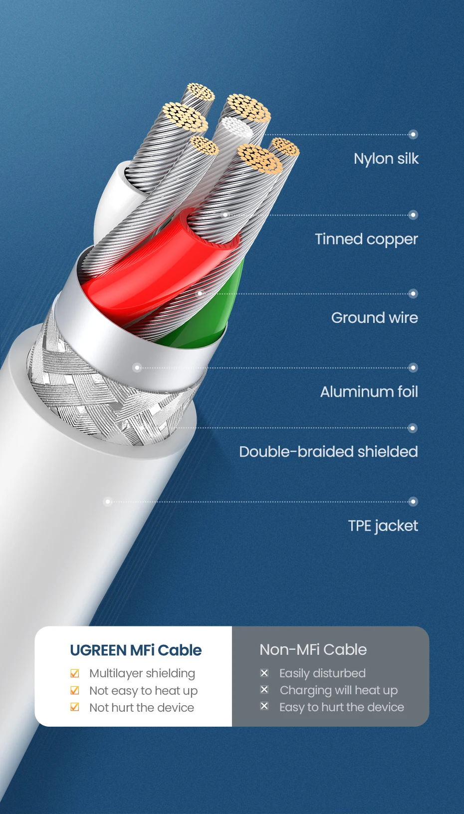 Choose 24/20AWG thick tinned copper core and multi-layer shielding, to prevent signal interference and data loss