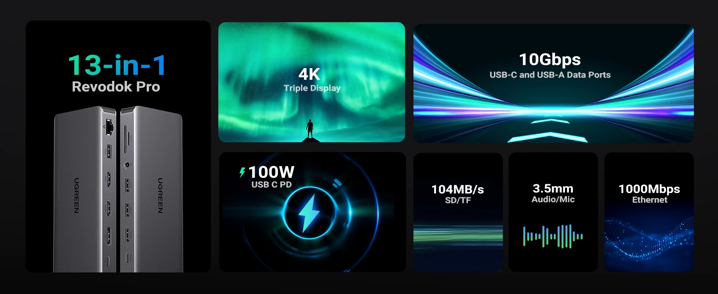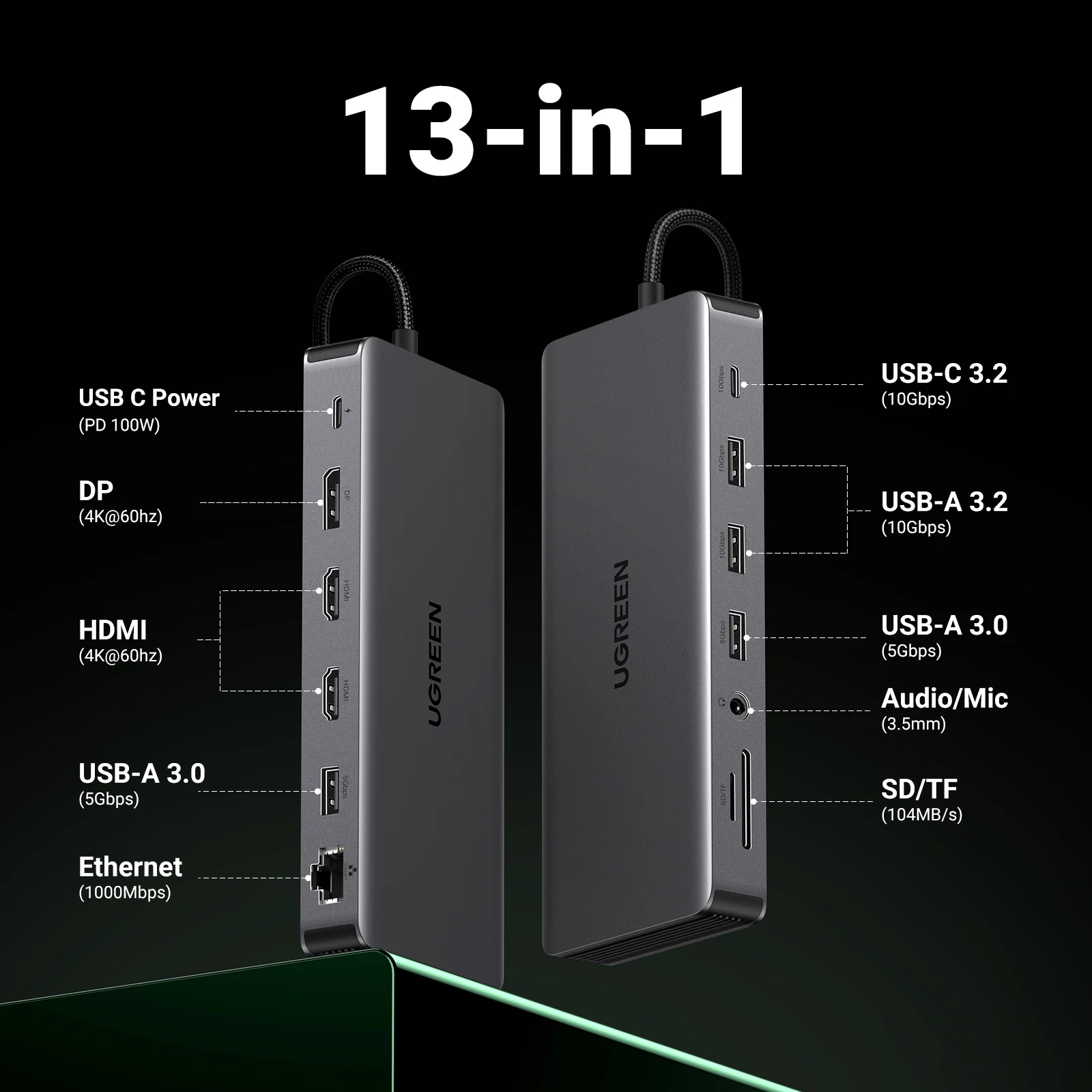 UGREEN USB C Docking Station 13 in 1 4K Triple Display Dual HDMI 10Gbps USB C HUB 100W PD SD/TF for MacBook Pro Air Dell XPS