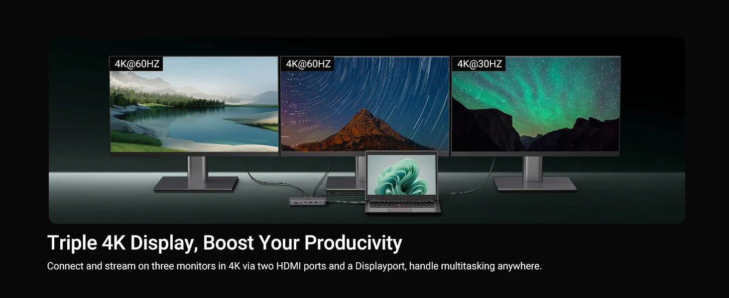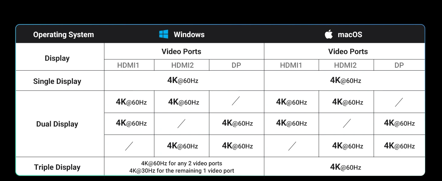✔Triple-Monitor Display: Support up to 4K triple-screen display. Support single and dual-monitor displays up to 4K@60Hz (Note: MacBooks only support mirroring mode)
