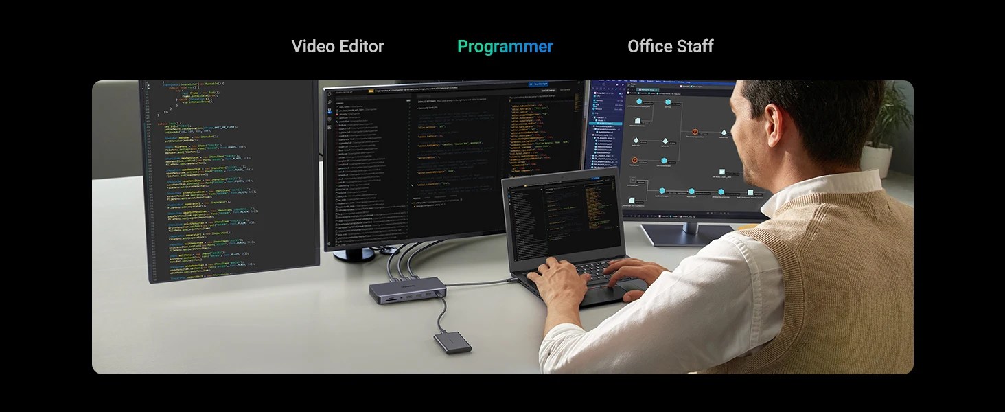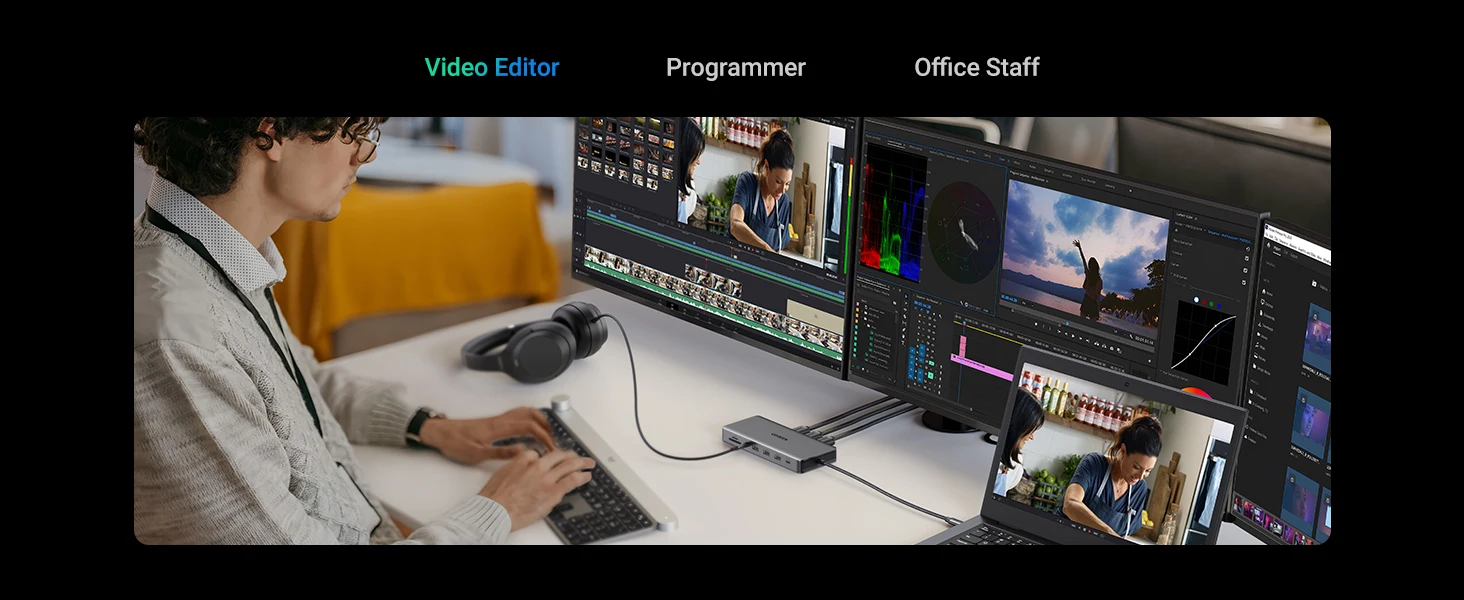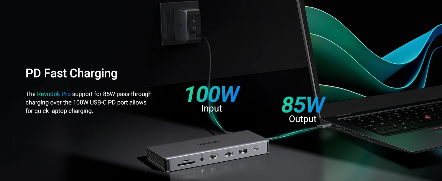 ✔100W Power Delivery: Supports up to 85W USB-C pass-through charging via USB-C PD port, reserves 15W for other interface operation.