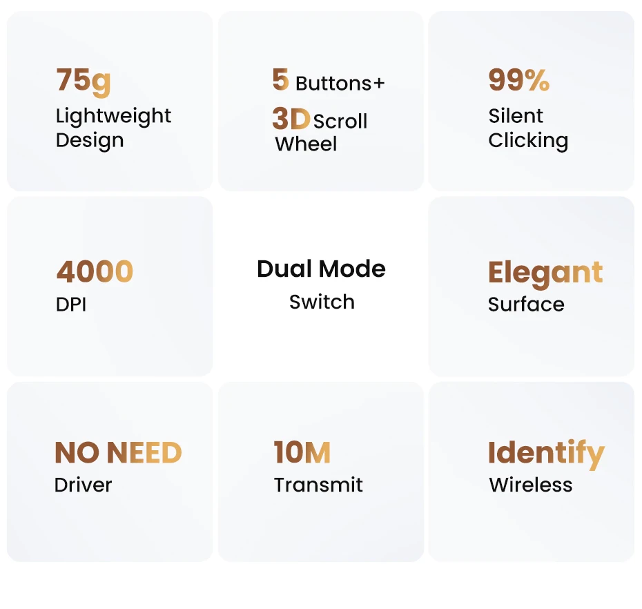 Connection method : Bluetooth5.0 & 2.4G Dual-Mode Wireless Mouse
