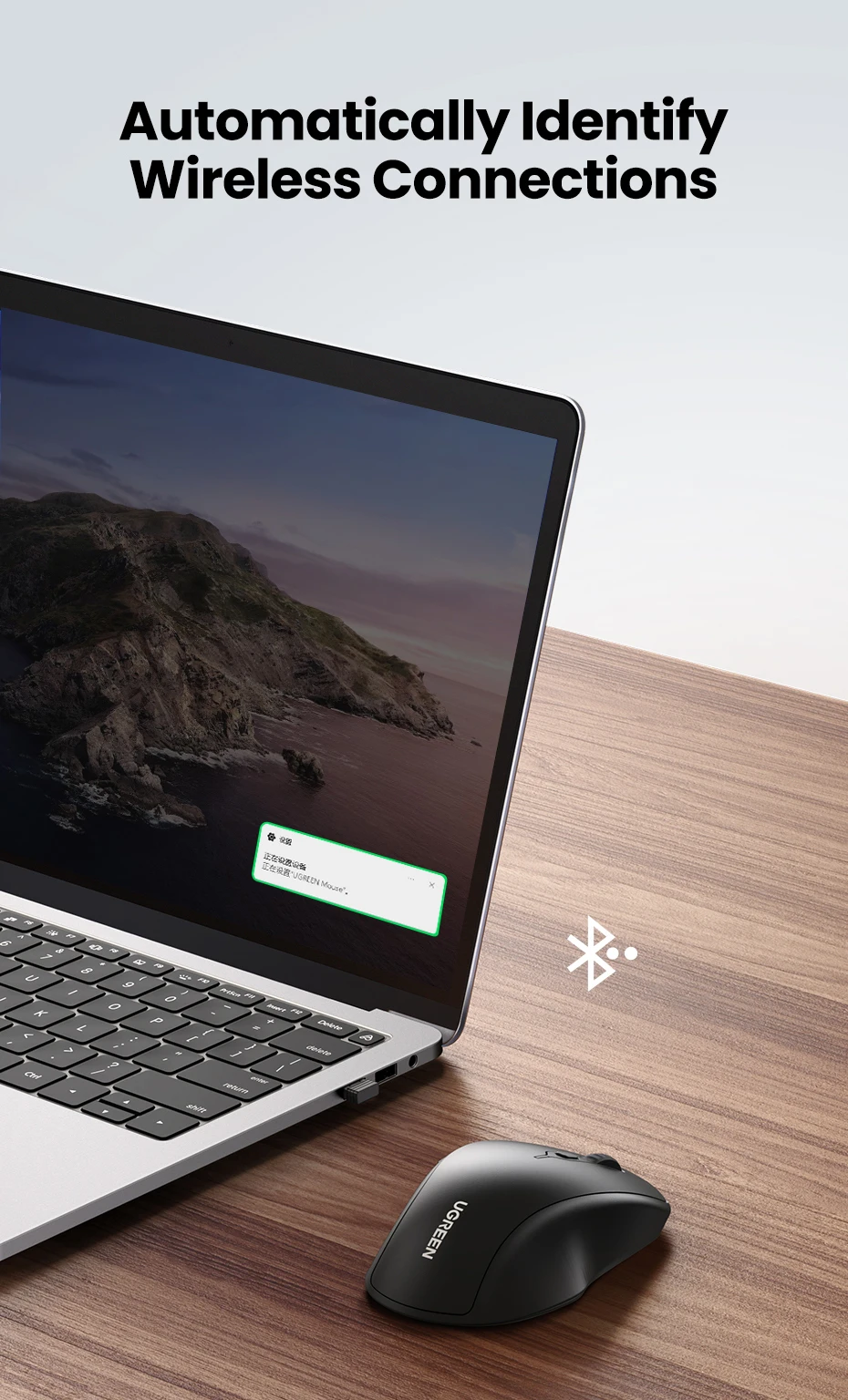 Step 3: For first-time use, a window will pop up for Windows 10 or later. Please follow the steps to proceed. For other systems, please enter the Bluetooth devices list, search "UGREEN BLE Mouse" and connect.