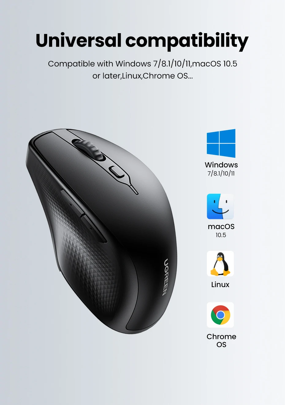 • 4000dpi Ergonomic Design :The 4000dpi ergonomic design of the Ugreen mouse offers a comfortable grip and precise tracking, enhancing your gaming or office productivity.