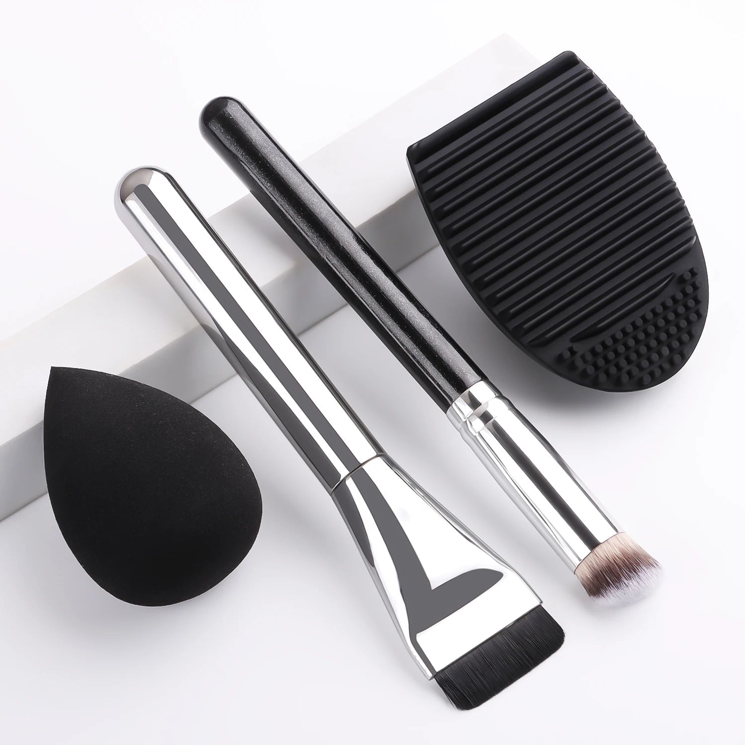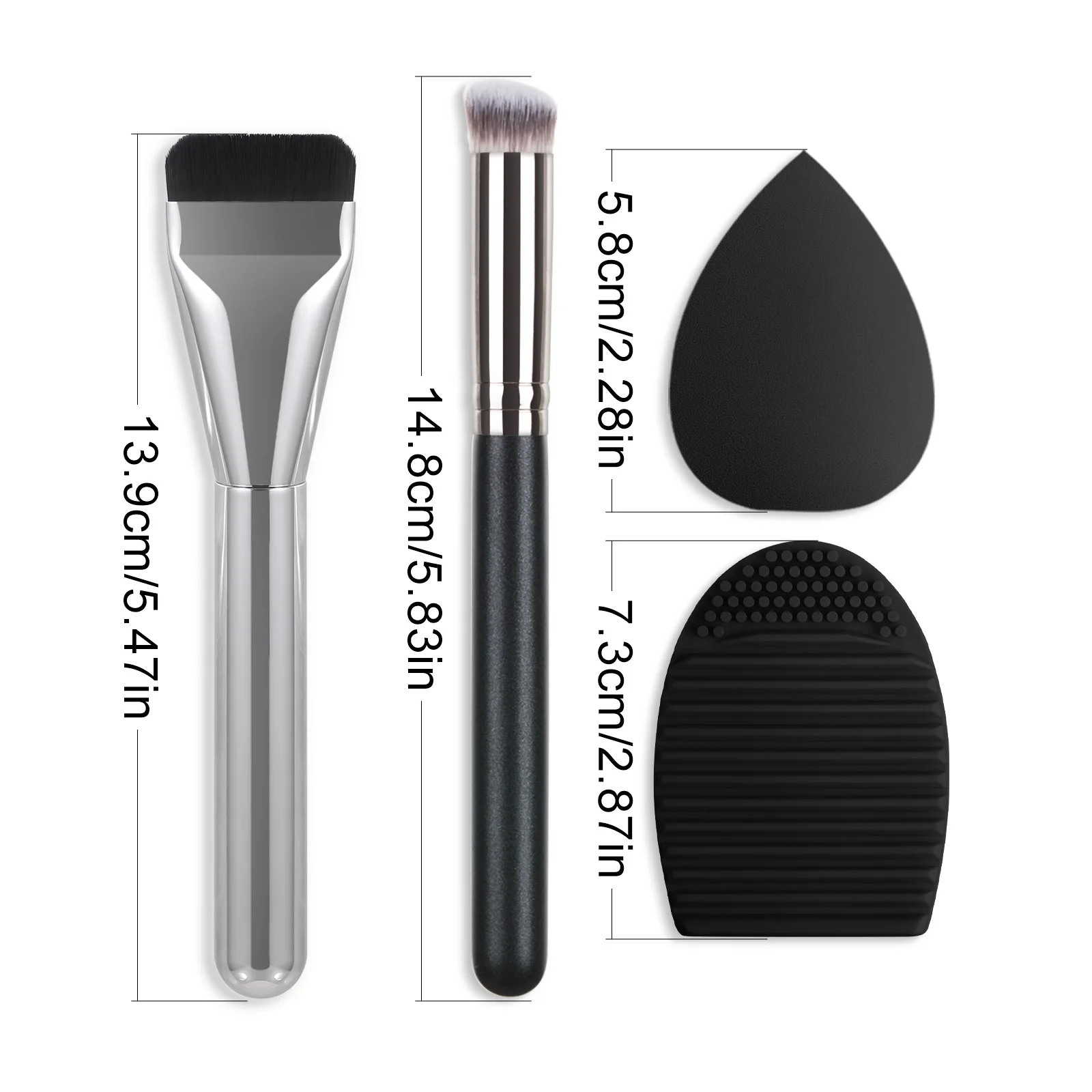 Ultra Thin Foundation Brush Makeup Mixing Palette with Spatula Flat Face Contour Brush Cosmetic Puff Blender Beauty Makeup Tools