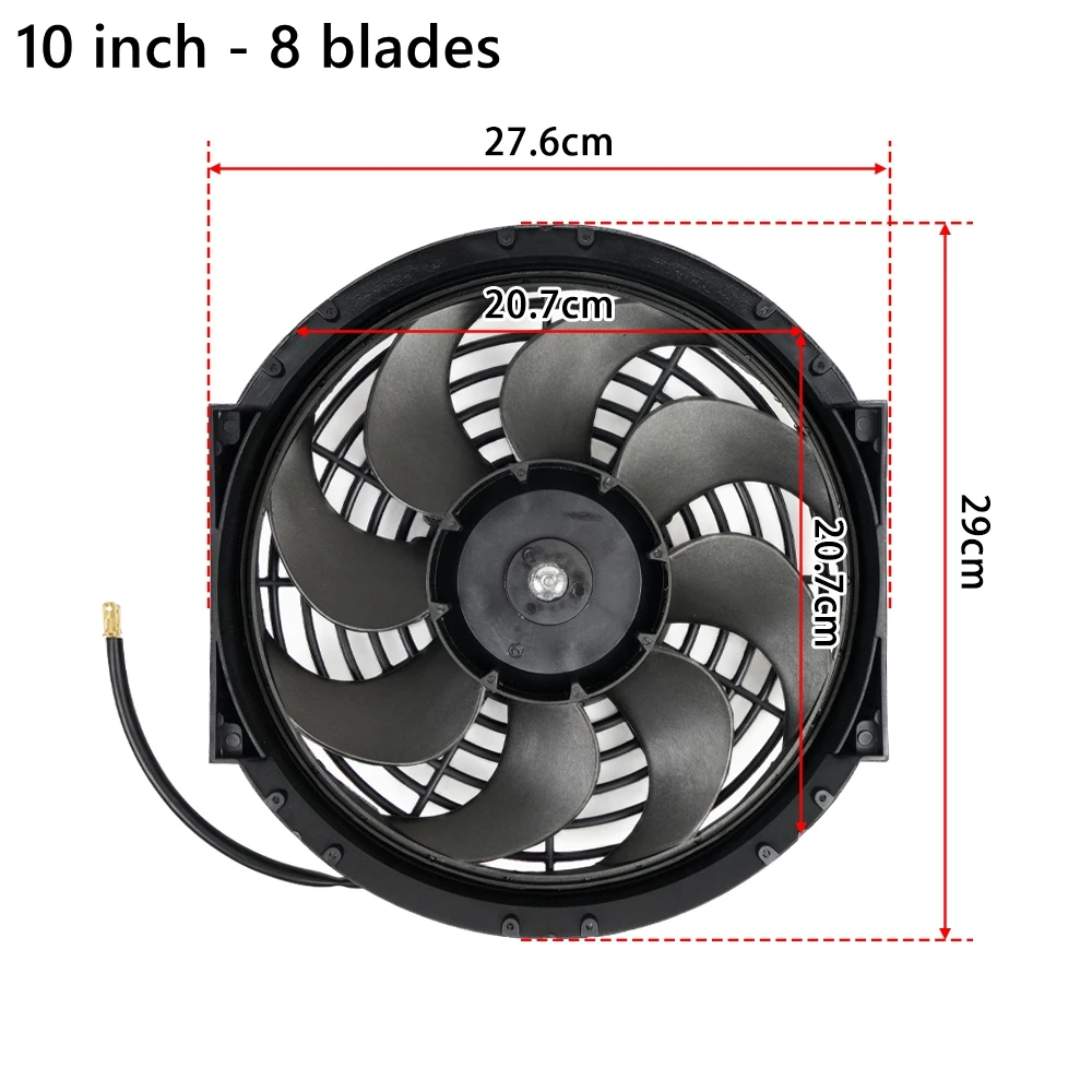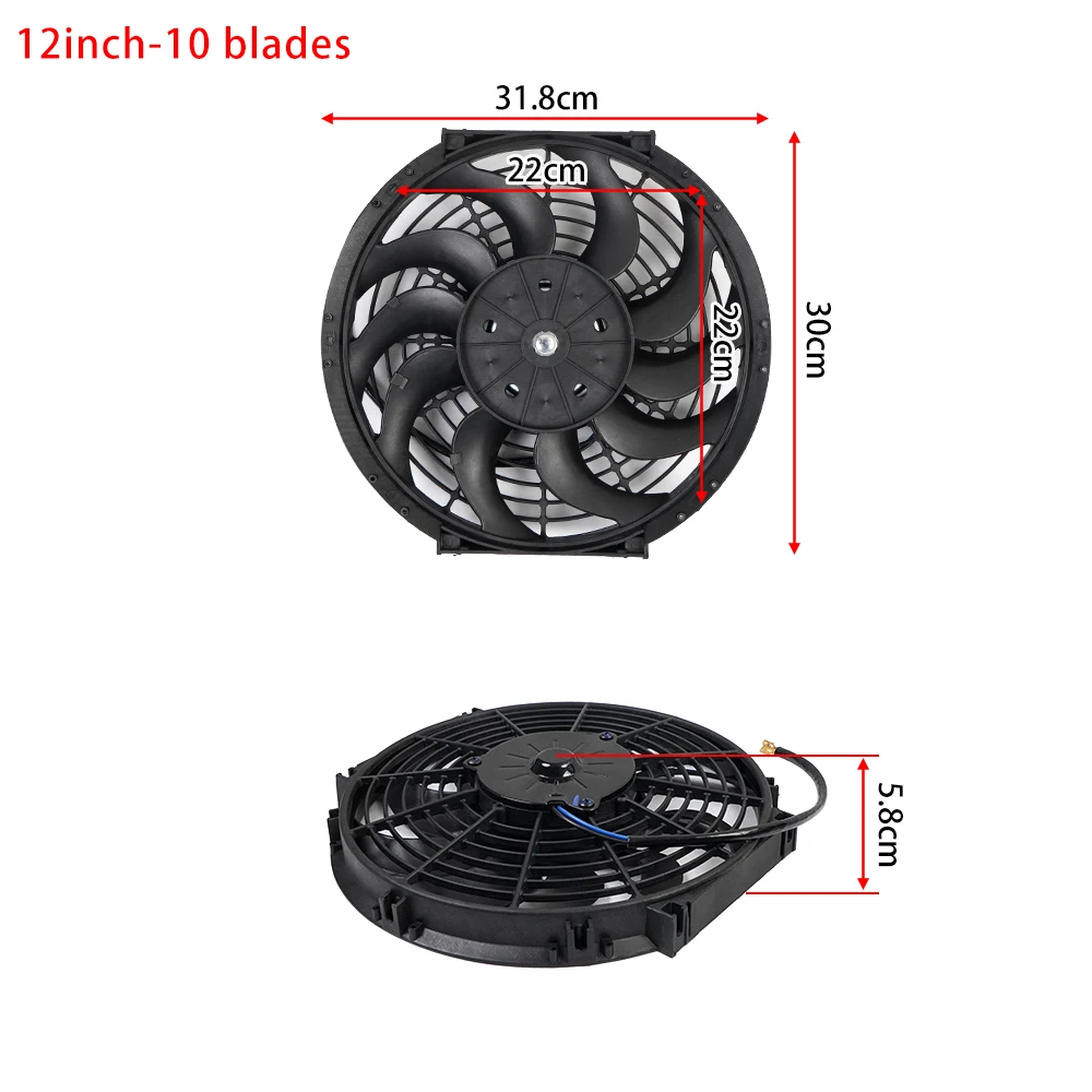 Universal 7/9/10/12/14/16 Inch 12V 80W 2100RPM Car Air Conditioning Cooling Fan Blade Cool Mounting Kit CF-1001 Black CF-1001