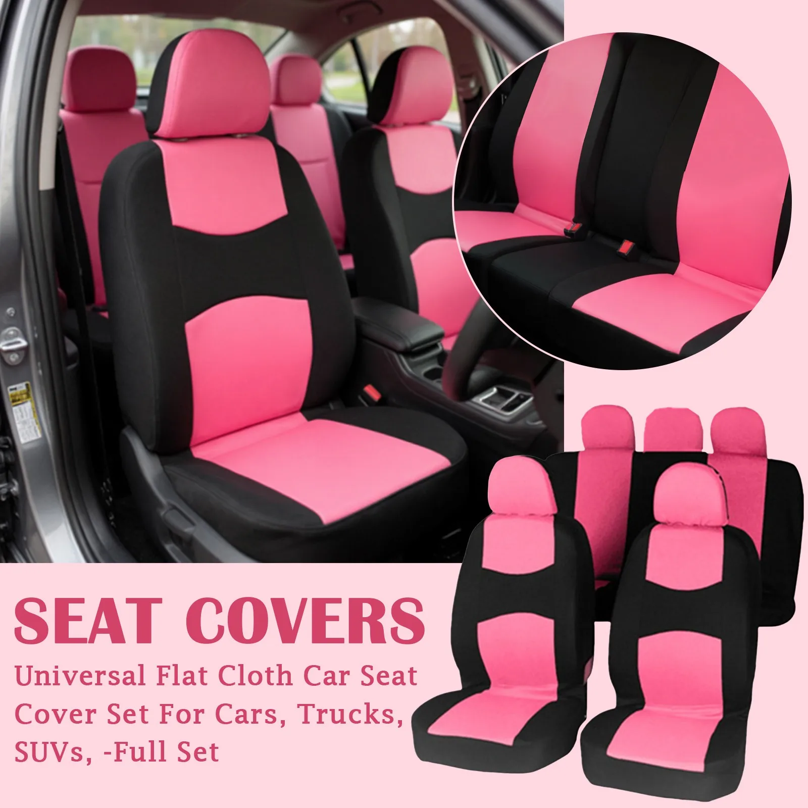 Universal Flat Cloth Car Seat Cover Set For Cars, Trucks, SUVs, -Full Set