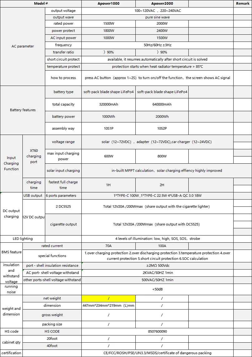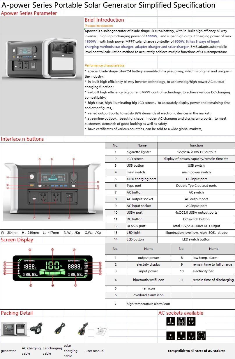 Universal Socket Apower1000W Stock in Dubai High Power Solar Generators Portable Energy Station Backup Solar Batteries Inverters