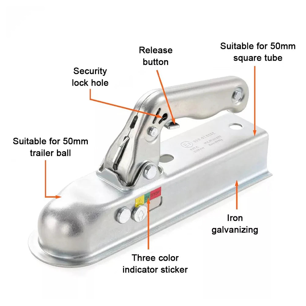 Universal Trailer Coupling Hitch 50mm Pressed Steel For Unbraked Trailers Upto 750kg Trailer Hitch Towing Coupler Mount