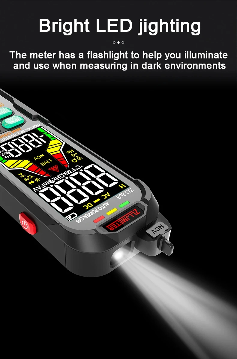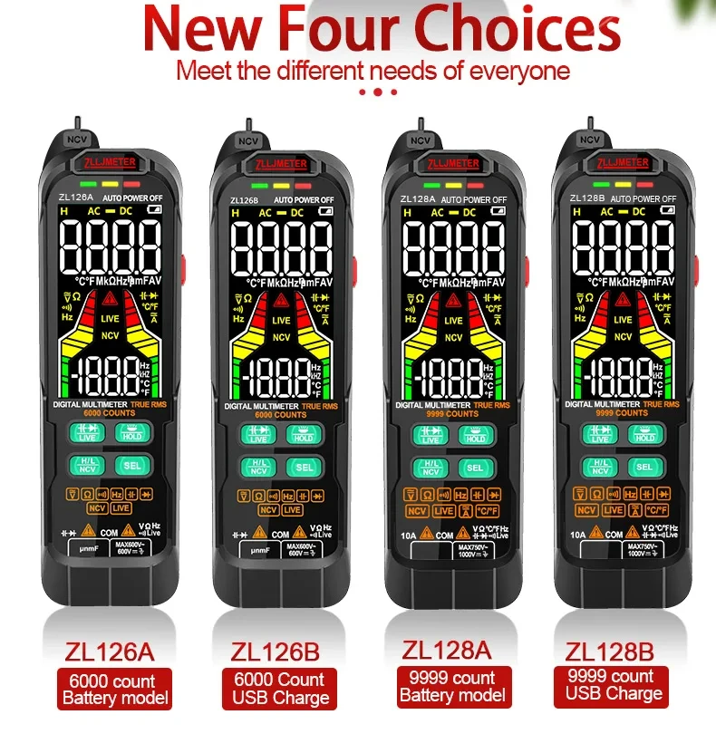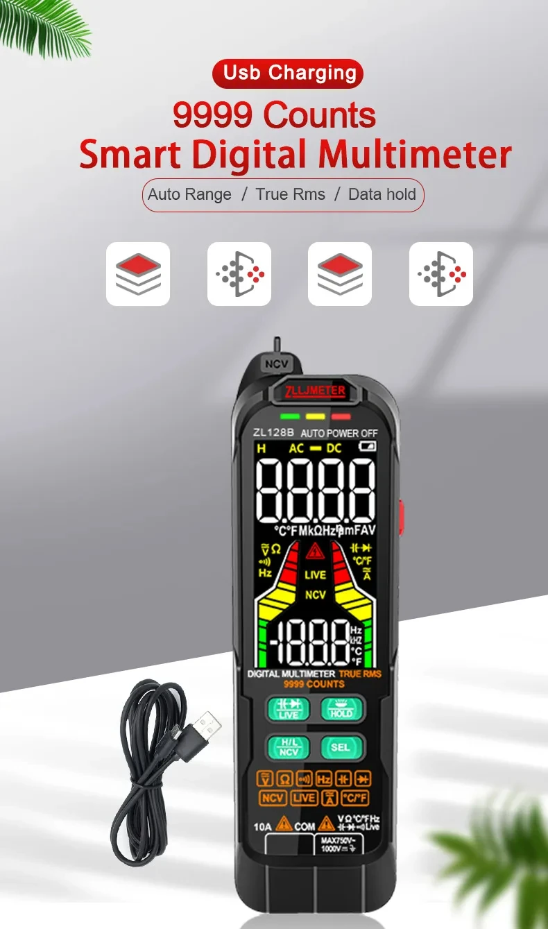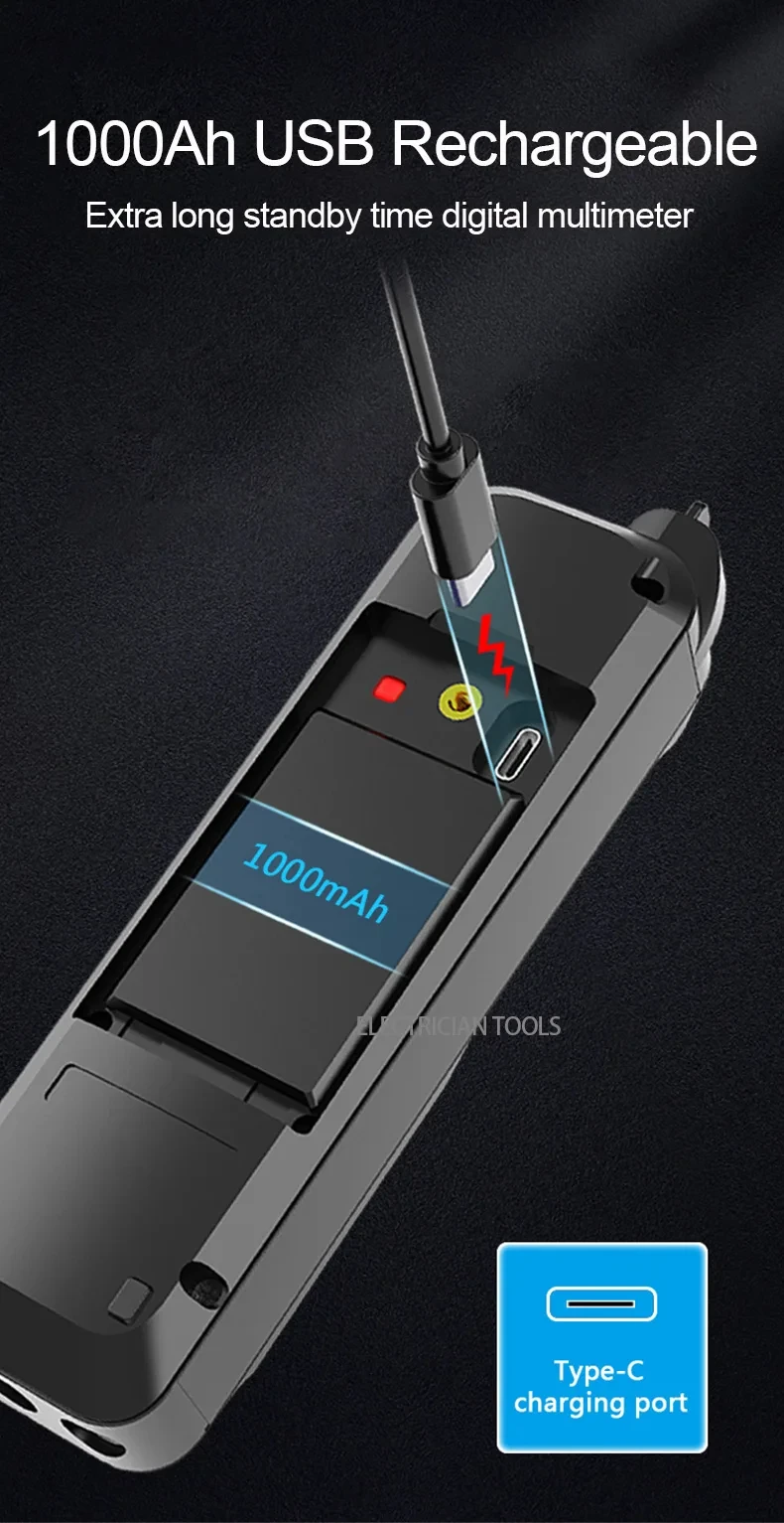 6000 counts, AC/DC voltage,manual and automatic (USB charging, 1000Ah large battery)