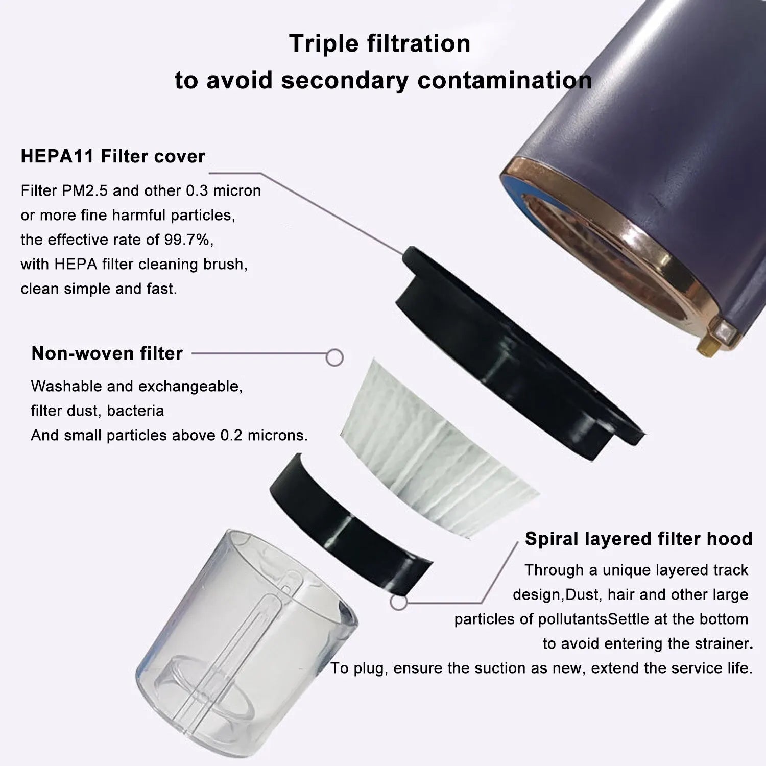 4. Triple filtration to avoid secondary pollution, HEPA11 filter cover, non-woven filter and spiral layered filter cover