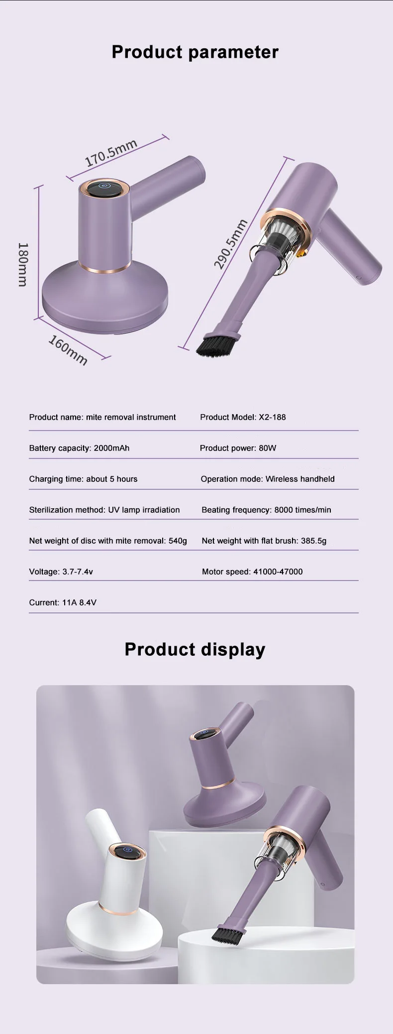 UV Exposure Mite Removal Instrument Cordless Handheld Vacuum Mattress Sofabed Home Detachable Filter