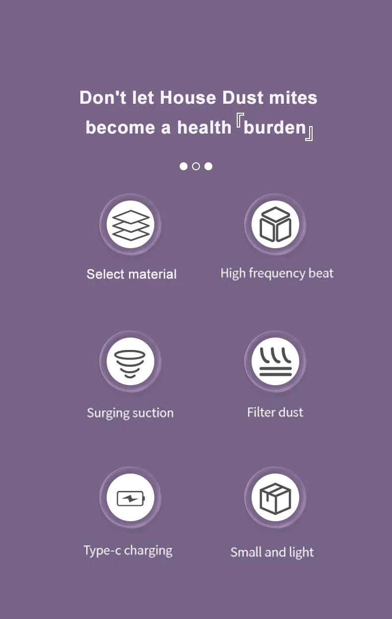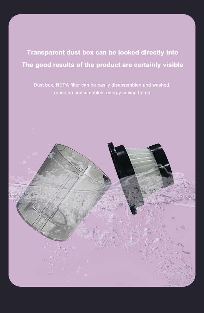 Use 14-2A mobile phone charger for charging. Ensure that all parts of the wireless mite vacuum cleaner have been assembled in place. Check whether the electric quantity is sufficient, in order to ensure that the product worksnormally.