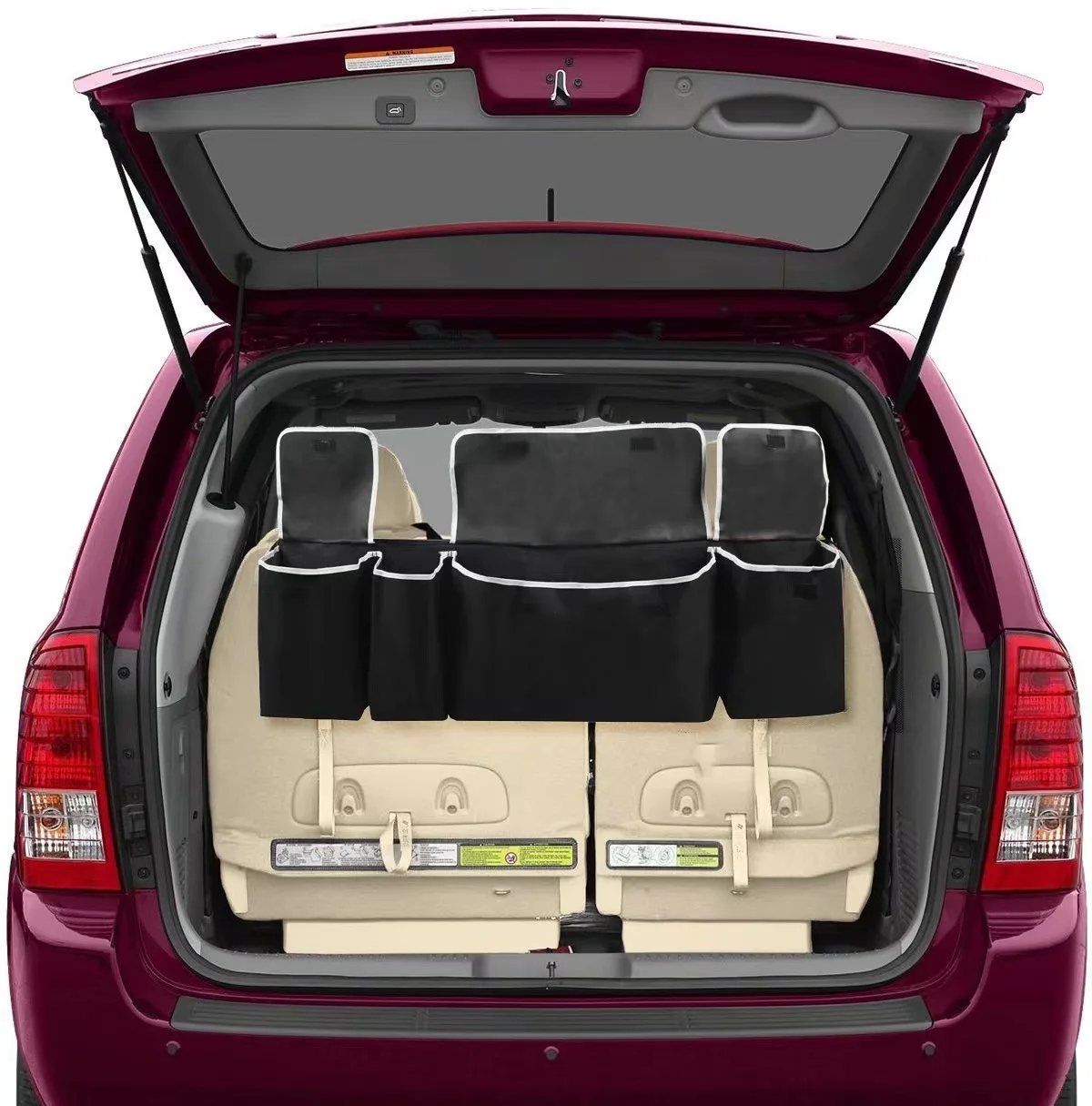 The rear seat back hanging feature allows for easy access and organization of items in your vehicle's trunk.