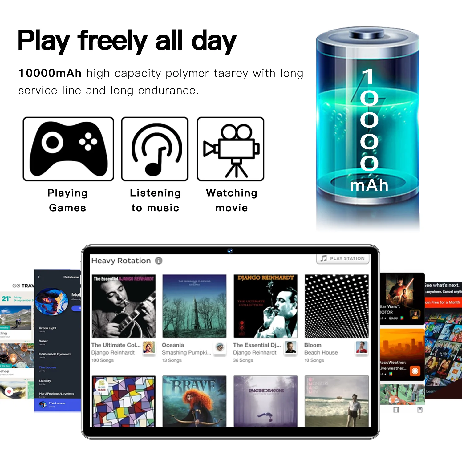 • Long-Lasting Battery Life :With a 10000mAh battery, this tablet provides long-lasting power, allowing you to use it for extended periods without worrying about running out of juice.