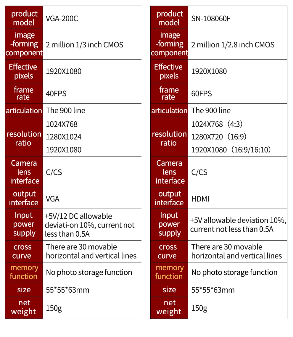 chip: VGA 1/3 inch, HDMI 1/2.8 inch