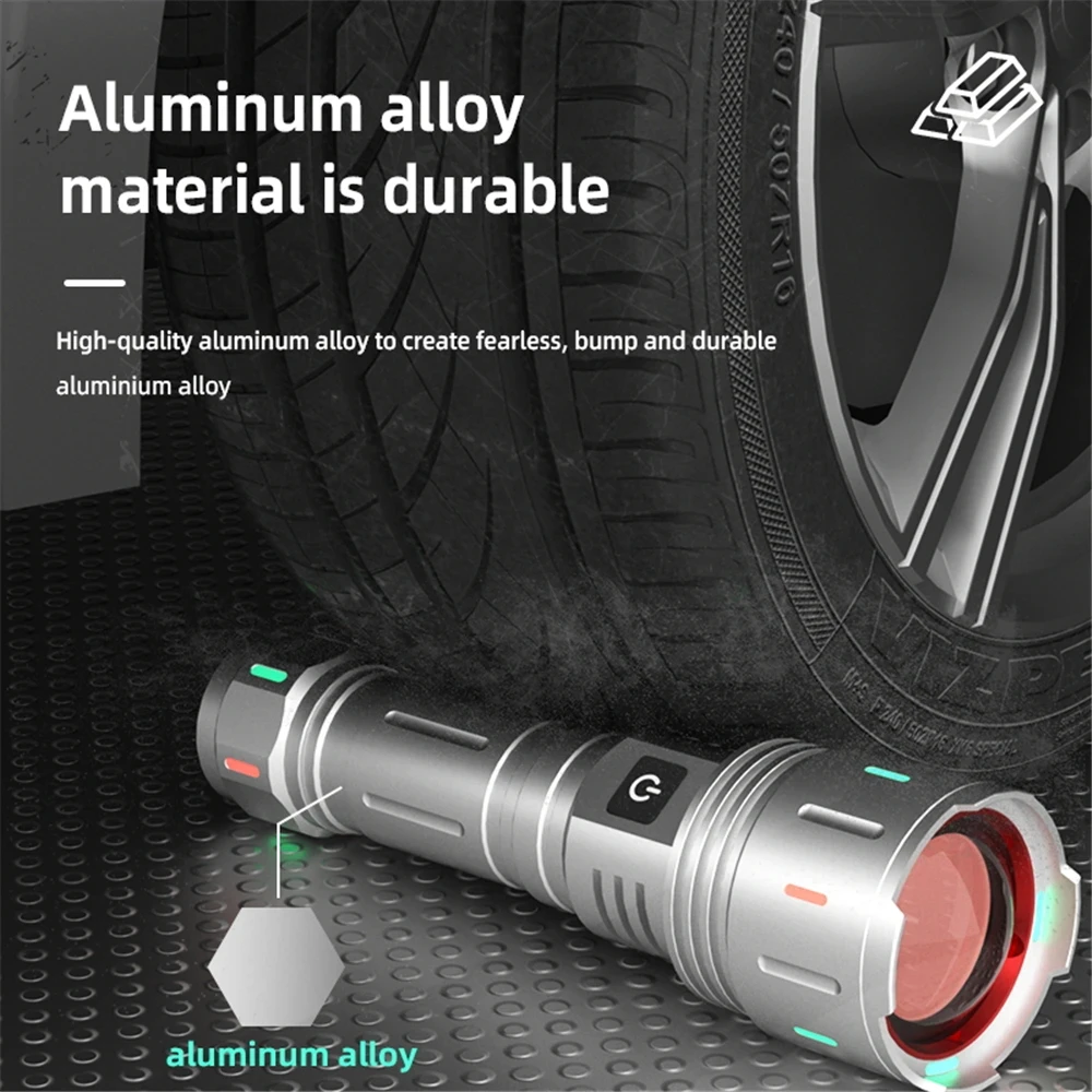 White Laser LED Flashlight with Power Bank Long Range High-Power Type-c Charging Tactical Torch 50W Outdoor Adventure Lighting