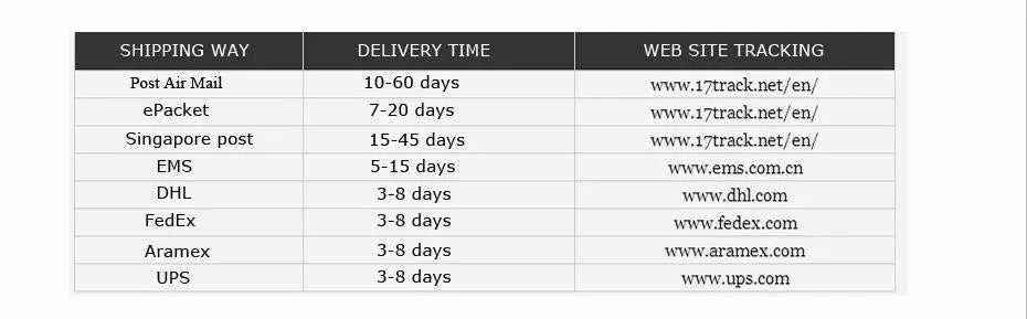 We recommend choosing ePacket and Standard Shipping AliExpress these two logistics methods. These two logistics are not included in any price above!