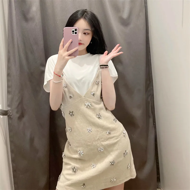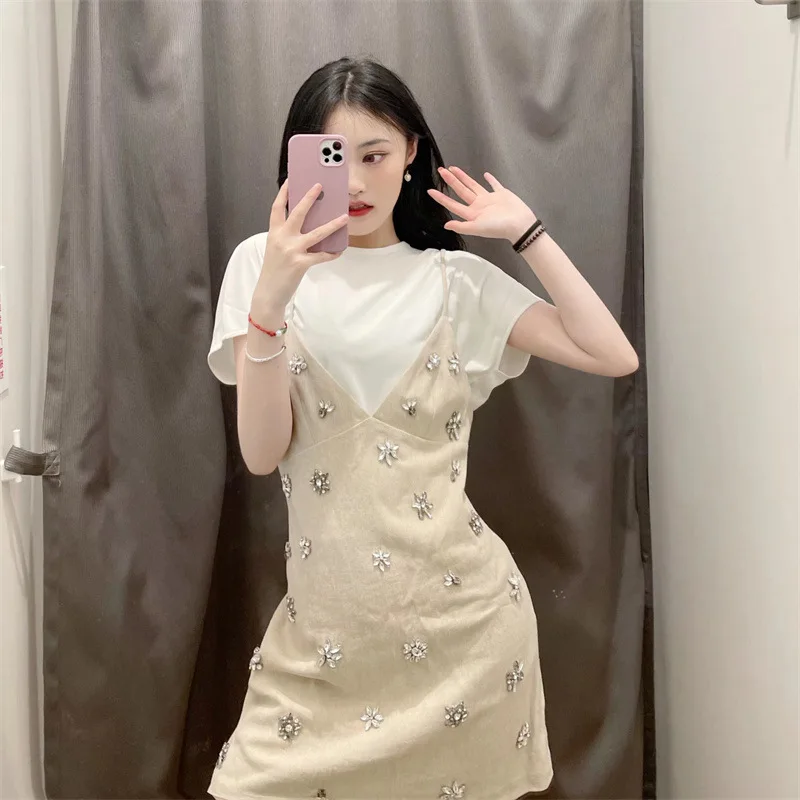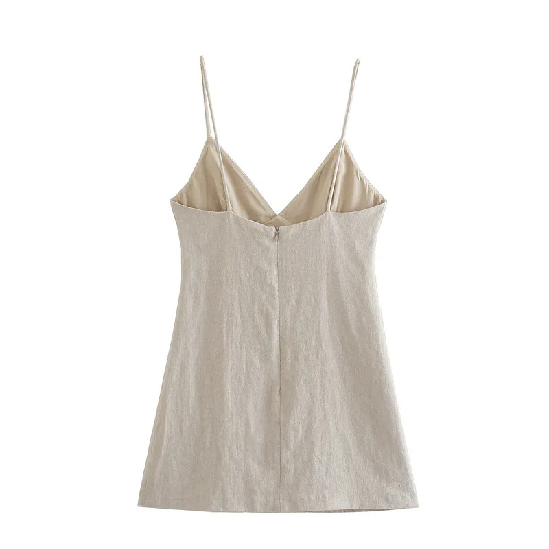 Women 2024 Chic Fashion Sleeveless Mini Dress Vintage Thin Straps Summer Female Ruffled Hollow Dresses Vestidos Mujer