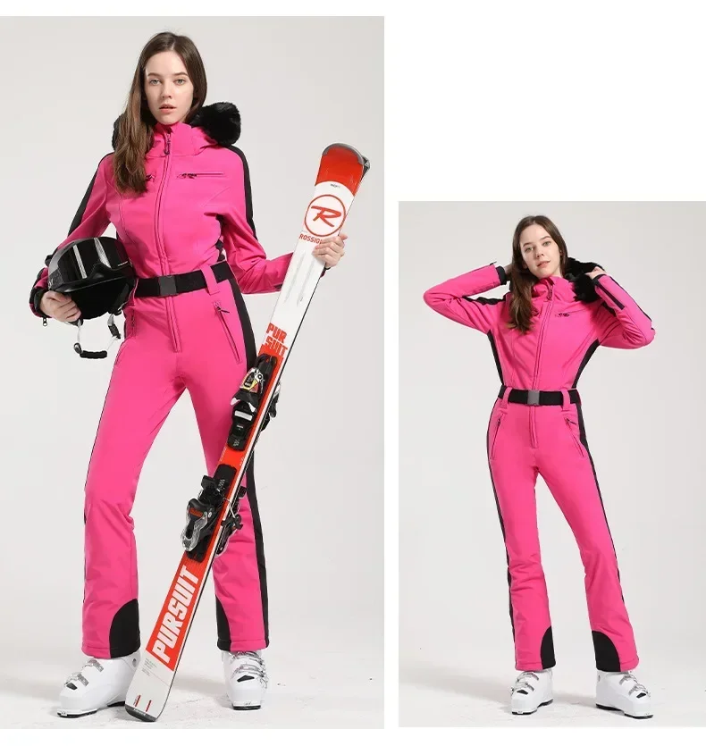 Women Slim Fit Skiing Suit Female Warm Snowboard Windproof Overalls Outdoor Waterproof Ski Jumpsuit Winter New One-Piece Clothes
