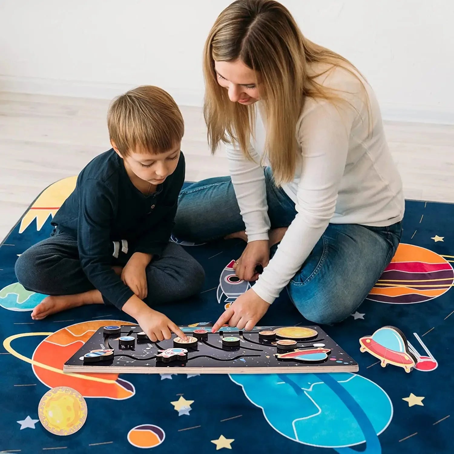 FeatureProduct name: solar system labyrinth board game toyProduct size (approximately): 39*22*1cmProduct weight (approx.): 500gProduct material: woodAge range: 3-6 years oldNumber of pieces: 1 piece