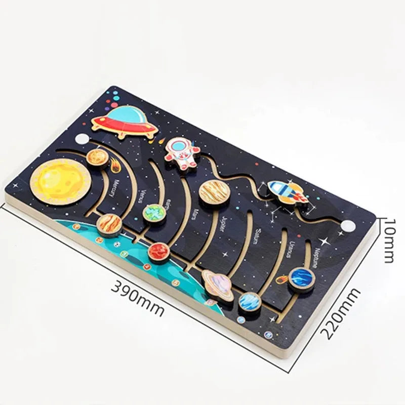 Wooden Solar System Puzzle Cognitive Game Colorful Sun Earth Space 9 Planets Science Toys For Children Training Educational Gift