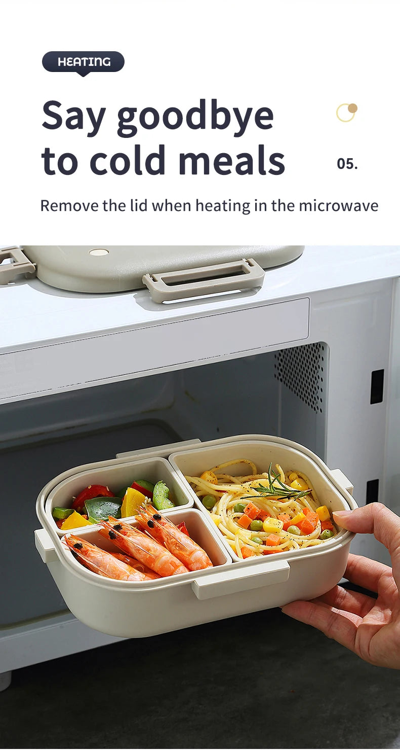 WORTHBUY Portable Plastic Bento Lunch Box With 3 Removable Compartment Leak-proof Microwave Salad Food Container For Kids School