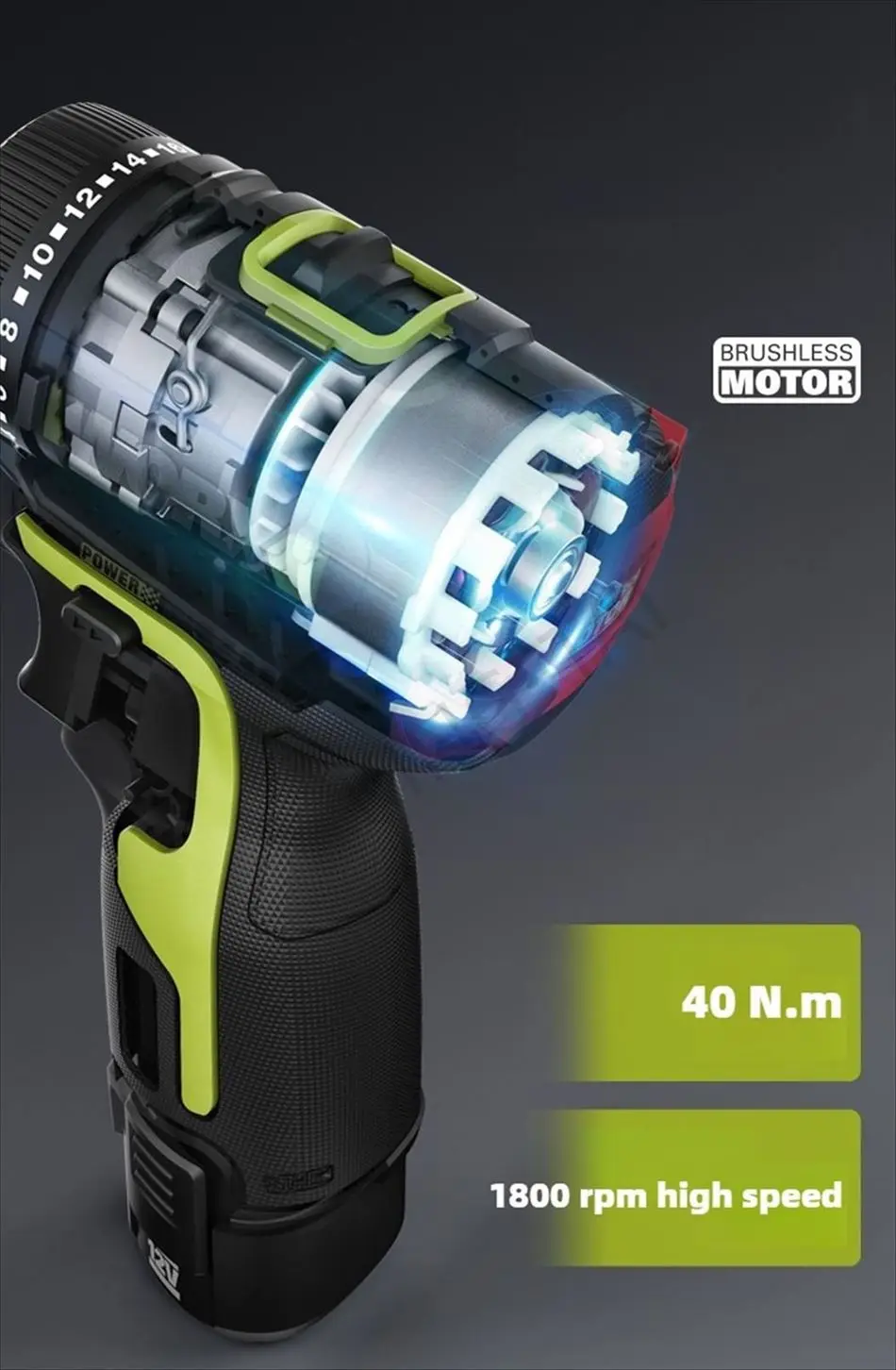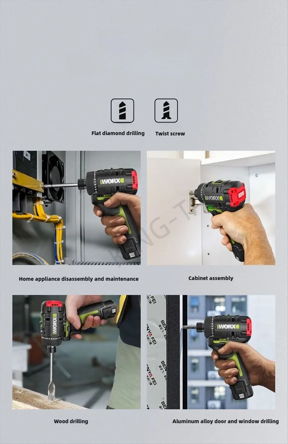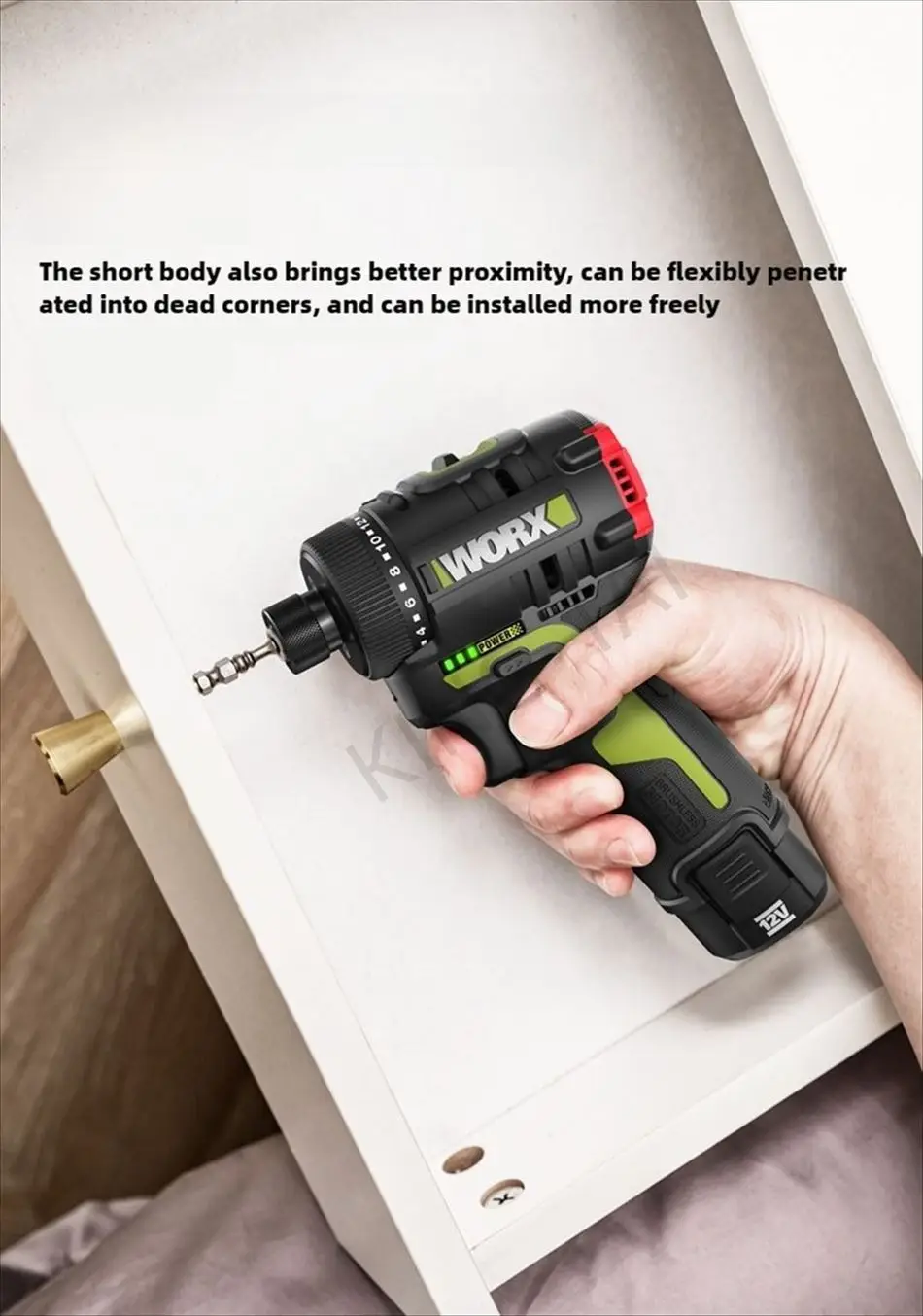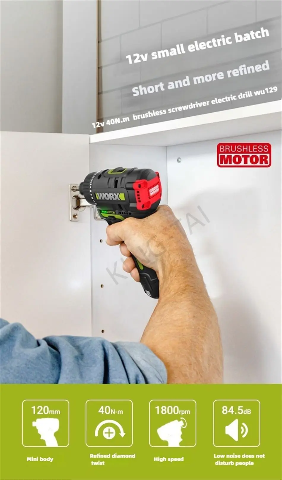 Worx WU129 Cordless Screwdriver 12V 1800rpm Brushless Motor 40Nm Dual Speed Adjustable Torque Wireless Universal Drill