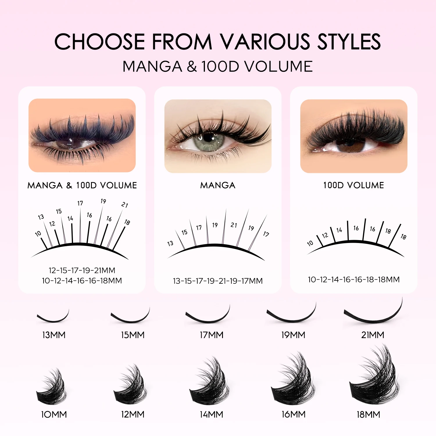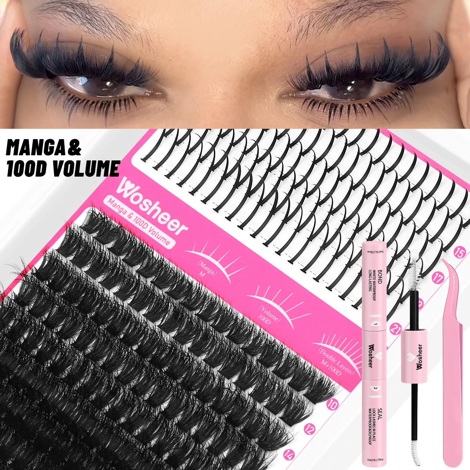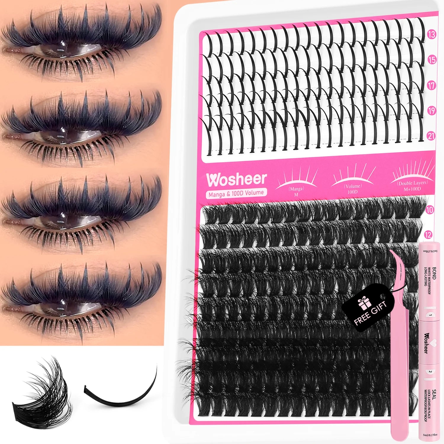 WOSHEER Lash Clusters Kit Lash Spikes Eyelash Clusters Volume Individual Lashes DIY Spiky Lash Extension Manga Clusters Eyelash